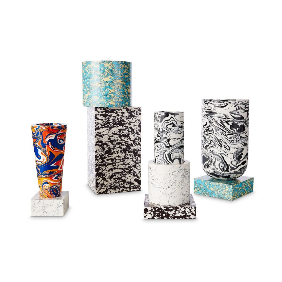 Das solide Design, die glatte Textur und die charakteristischen geometrischen Formen machen die Wirbelvase sowohl zu einer funktionalen als auch künstlerischen Ergänzung des Innenraums. Jede Kopie hat ein einzigartiges Muster, das sie zu einem einzigartigen dekorativen Akzent macht. Die Vase ist in verschiedenen Größen und Varianten erhältlich, wie z. B. STEM und Small, sodass Sie sie an verschiedene Innenarchitekten anpassen können.