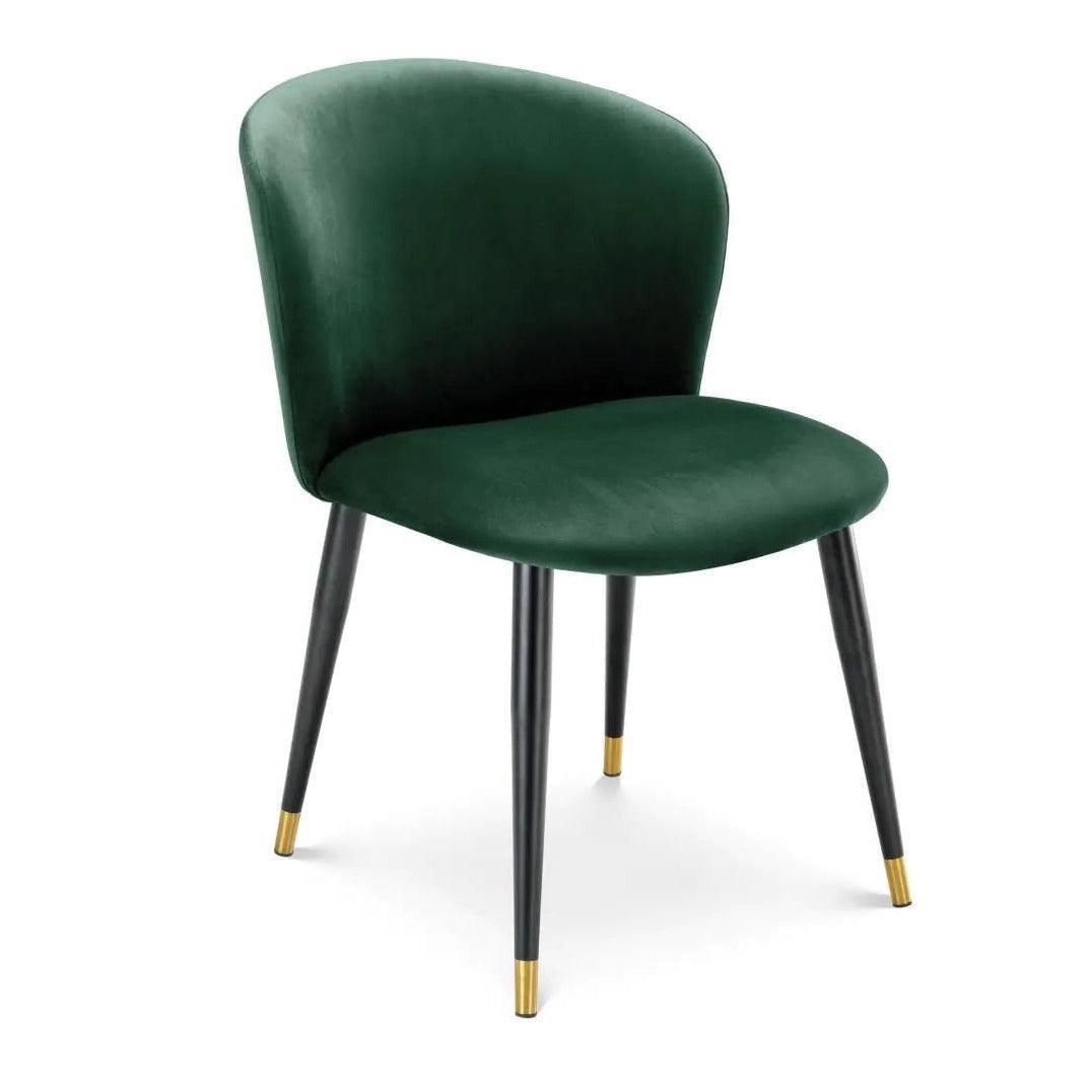 Wir laden Sie ein, Ihr Esszimmer mit dem äußerst charmanten dunkelgrünen, samtigen Esszimmerstuhl mit dem beeindruckenden Namen Roche Volante zu genießen. Dieses Möbelstück wird Sie in Zeit und Raum in die dekadente Renaissance des Retro-Stils versetzen und inspiriert von den charakteristischen Silhouetten der Esszimmerstühle aus der Mitte des letzten Jahrhunderts.