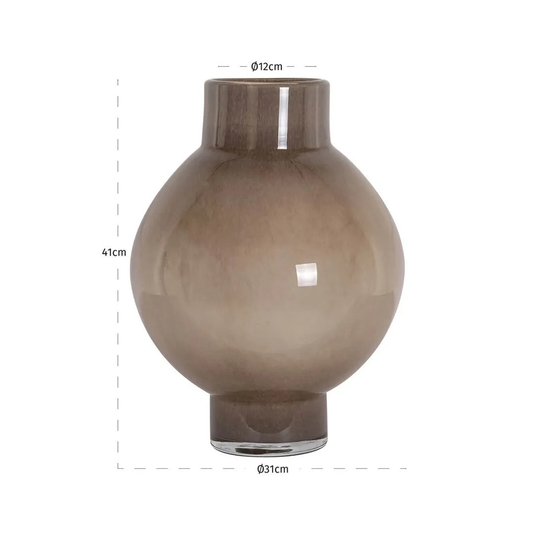 Elegante Vase Celina in Braun ist ein stilvolles Accessoire, das einen Hauch von Modernität und Raffinesse in Ihr Zuhause bringt. Ihre abgerundete Form und der subtile Farbton des Glases sorgen dafür, dass sie sowohl mit minimalistischen Arrangements als auch mit klassischeren Einrichtungsstilen hervorragend harmoniert. Dieses dekorative Element präsentiert sich sowohl allein als auch im Duo mit Ihren Lieblingsblumen und verleiht dem Raum einen einzigartigen Charakter.