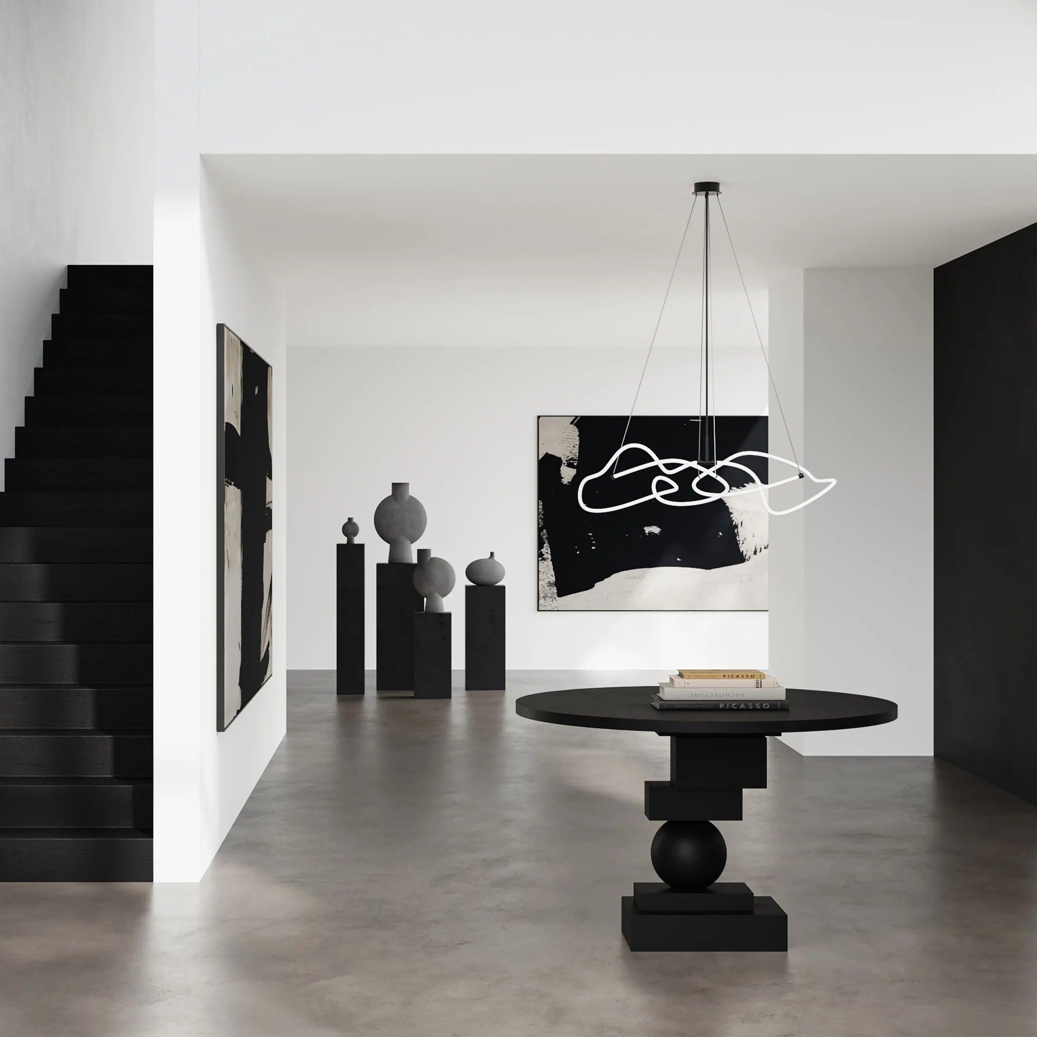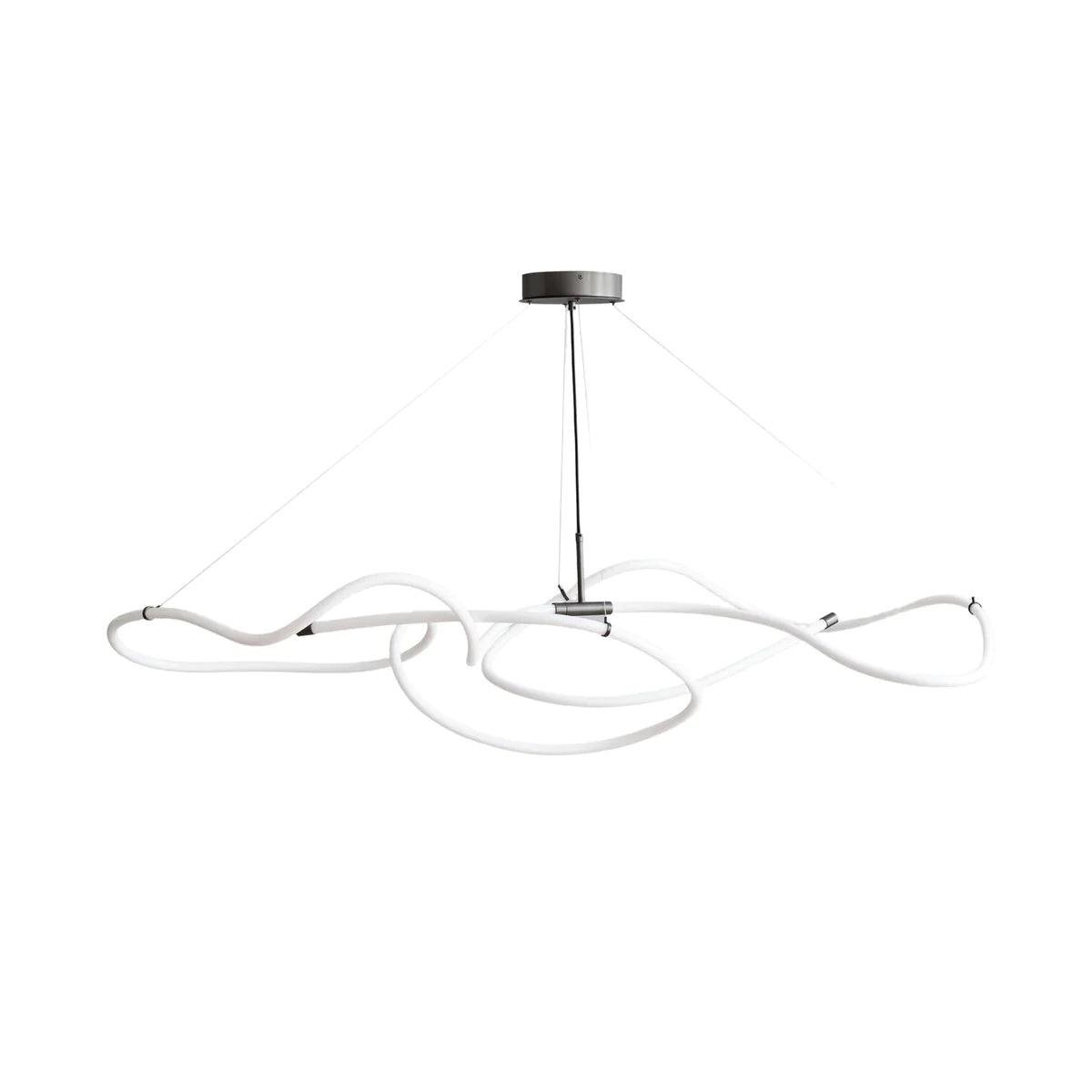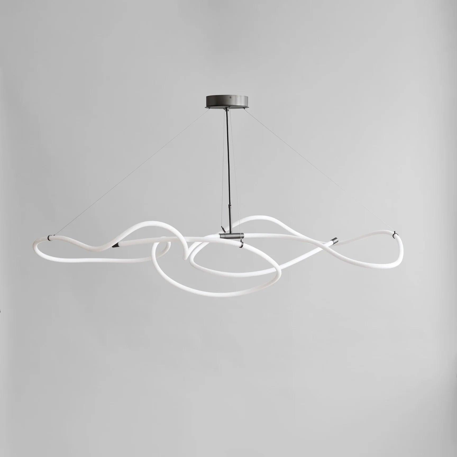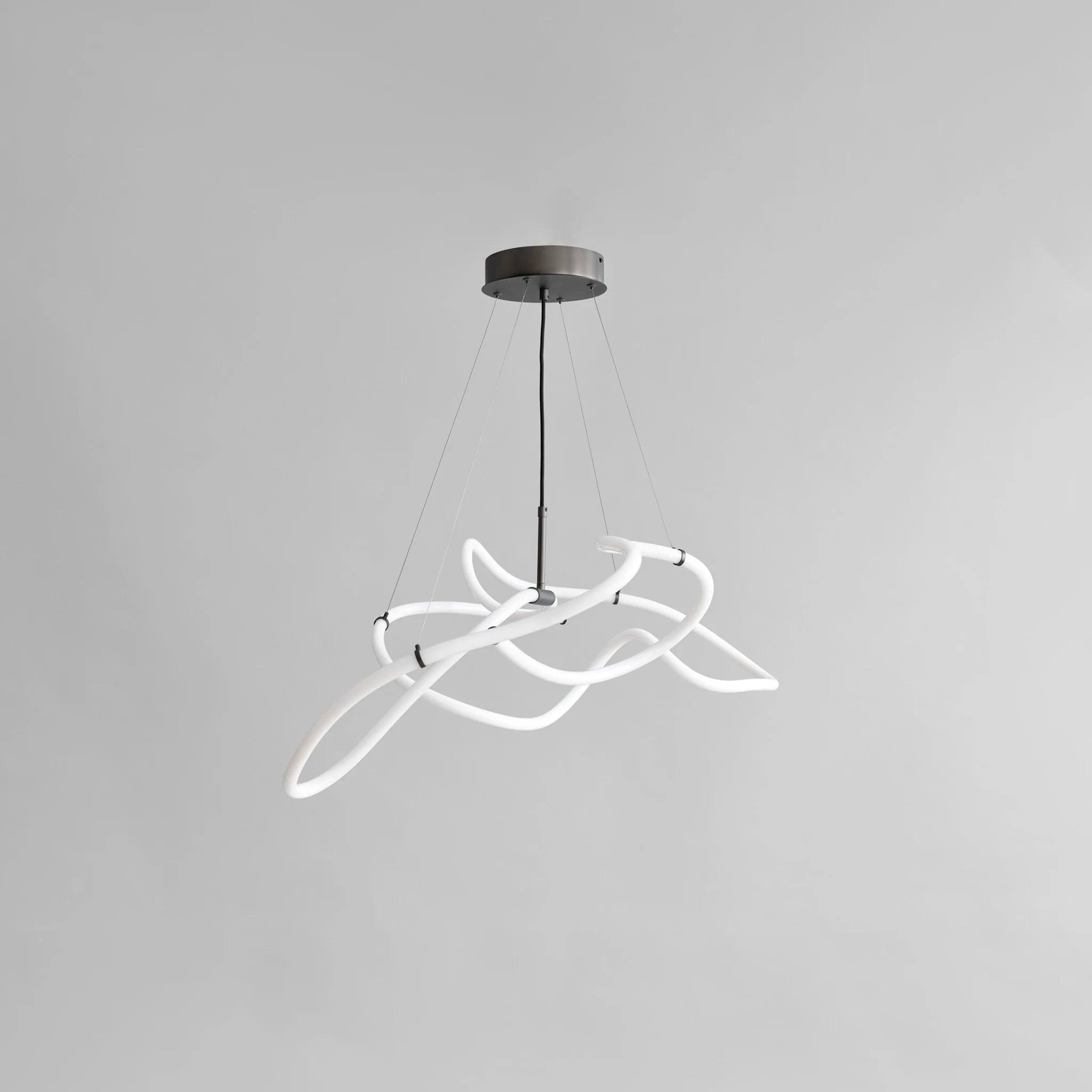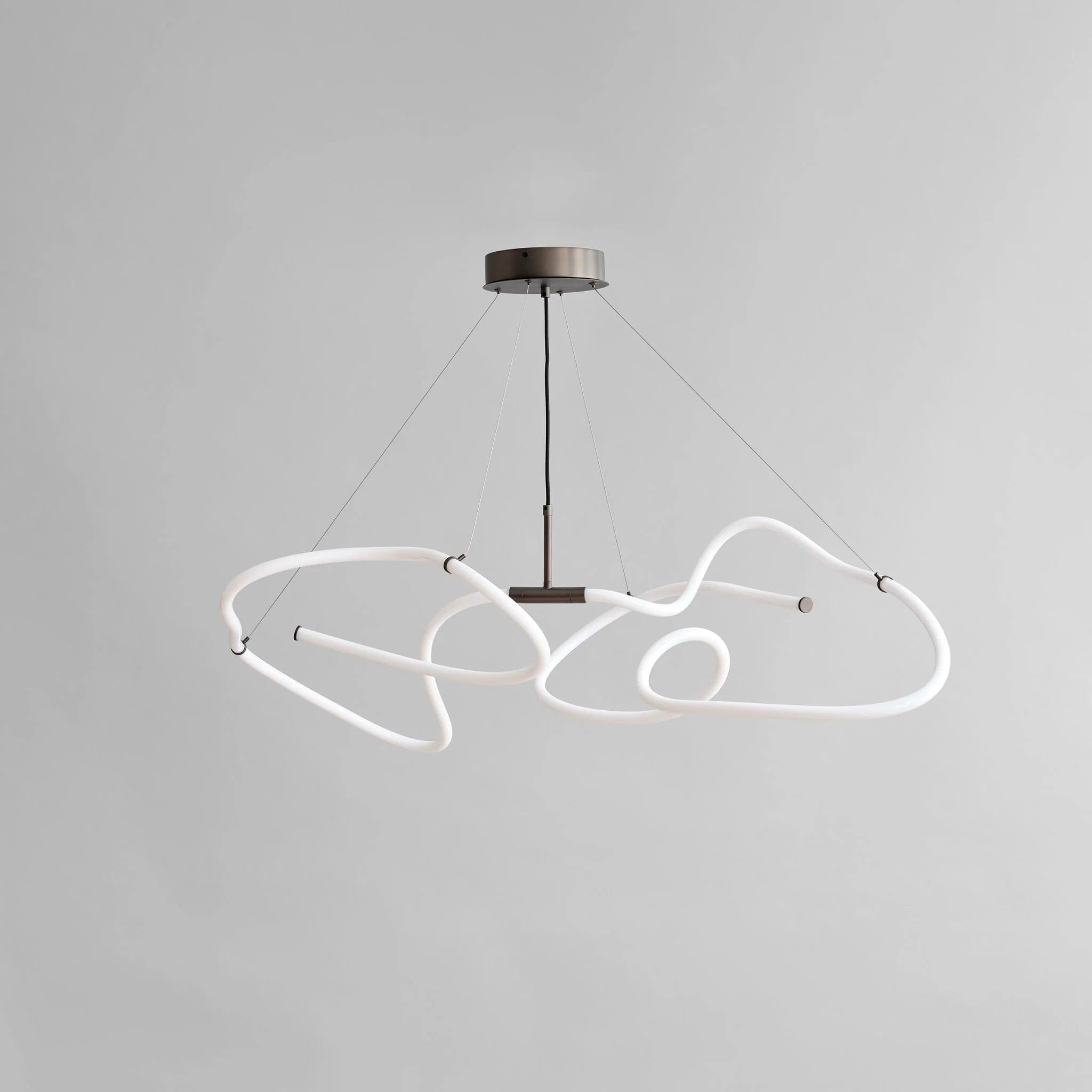 Der in zwei Größen erhältliche Ghost -Kronleuchter enthält gebautes LED -Licht. In dieser Serie gibt es ein leuchtendes weißes Acrylrohr, in dem es eine dauerhafte LED -Lichtquelle gibt, die beeindruckende 25.000 Sonnenstunden bei einer warmen Temperatur von 2400 Kelvinen bietet. Abnehme von der Schwere, die typischerweise mit Neon verbunden ist, die innovativen innovativen Lampen Sie streiten ein wärmeres, ermutigenderes Glühen und schaffen eine Atmosphäre der Gemütlichkeit und Komfort. Brown -Metall -Akzente sind ein ausgeklügeltes Finish des minimalistischen Designs. Der Kronleuchter kann auf vier verstellbaren Edelstahlverbindungen aufgehängt und für jeden Raum auf eine ideale Höhe eingestellt werden.