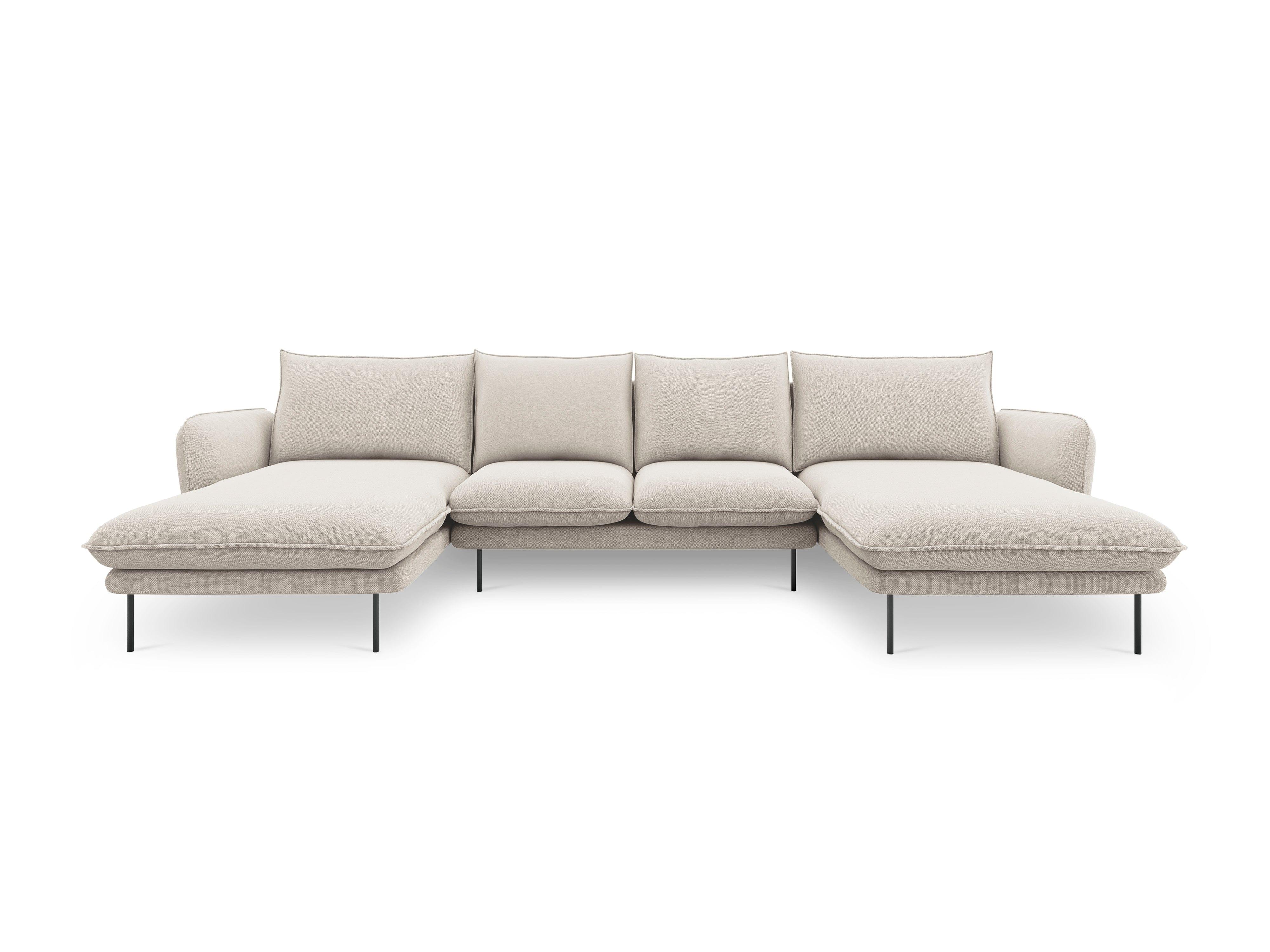 Sofa Panoramica für 6 Personen VIENNA hellbeige Chenille mit schwarzem Gestell