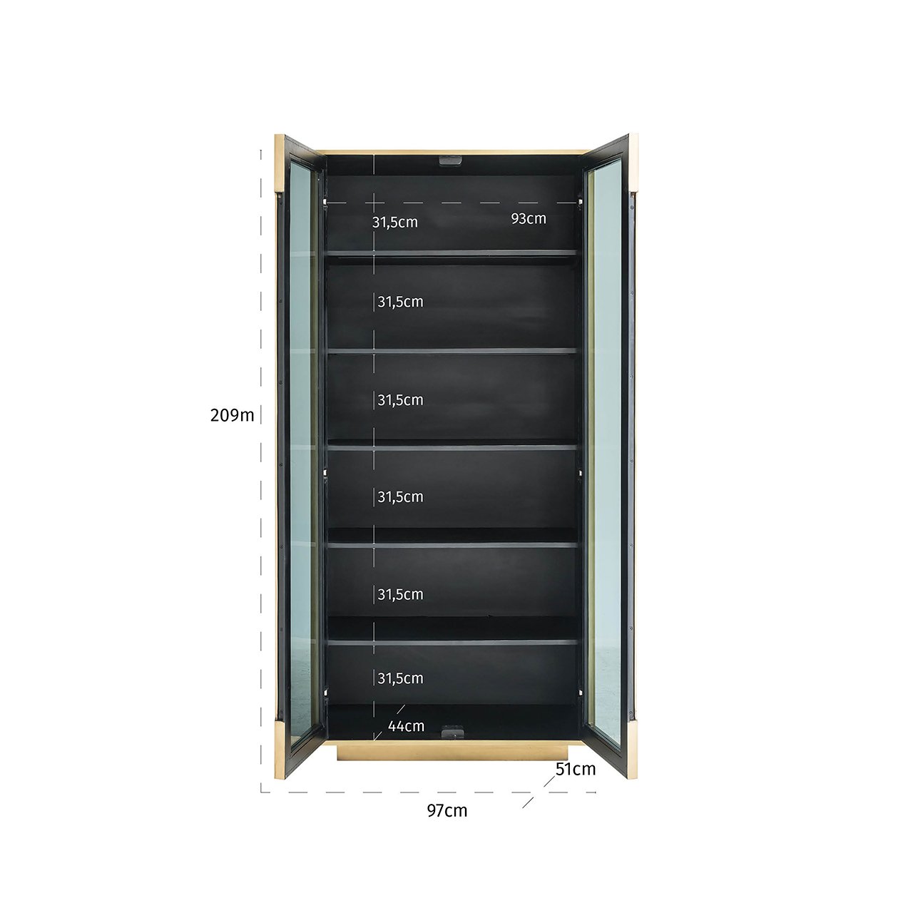 Vitrine Finsbury ist die Quintessenz von Luxus und Eleganz in modernem Design. Ihre beeindruckende, hohe Form mit schwarz-goldener Oberfläche zieht die Aufmerksamkeit auf sich und wird zum zentralen Punkt der Einrichtung. Goldene Details, die durch eine einzigartige Technik der Messingbeschichtung erzielt werden, in Kombination mit dunklen Glasfronten, schaffen einen unverwechselbaren visuellen Effekt. Es ist eine luxuriöse Vitrine, die nicht nur die aufbewahrten Gegenstände zur Schau stellt, sondern auch dem Raum einen raffinierten Charakter verleiht.