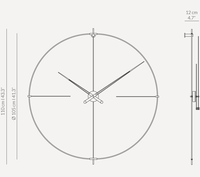 Wanduhr Bilbao ist Minimalismus in seiner reinsten Form. Der schlanke Rahmen aus schwarzem Glasfaser und die filigranen Zeiger aus natürlichem oder lackiertem Nussbaum bilden eine harmonische, leichte Komposition mit zeitlosem Charakter. Es handelt sich um eine designorientierte Wanduhr, die durch ihre Schlichtheit sowohl in moderne als auch in klassische Innenräume perfekt passt.