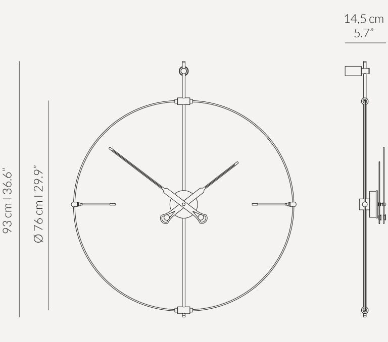 Die durchdachten Proportionen und edlen Materialien machen diese Designer-Wanduhr zu einer harmonischen Verbindung von Funktionalität und dekorativer Form. Der präzise deutsche UTS-Mechanismus garantiert Zuverlässigkeit über Jahre, und die elegante Konstruktion sorgt dafür, dass die Wanduhr in der Mini-Version zu einem markanten, aber subtilen Akzent im Innenraum wird.