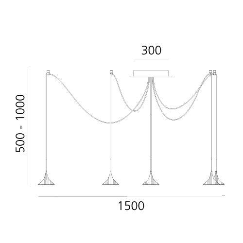 Kronleuchter Unterlinden ist eine moderne Interpretation einer klassischen Beleuchtungsform, die sich durch volle gestalterische Freiheit auszeichnet. Entworfen von dem renommierten Studio Herzog & de Meuron, besteht dieser außergewöhnliche Kronleuchter aus fünf unabhängigen Lichtquellen, die an 2,5 Meter langen Kabeln hängen. Alle führen zu einem zentralen Punkt und ermöglichen die Schaffung unterschiedlicher Kompositionen, die perfekt zum Charakter des Raumes passen.