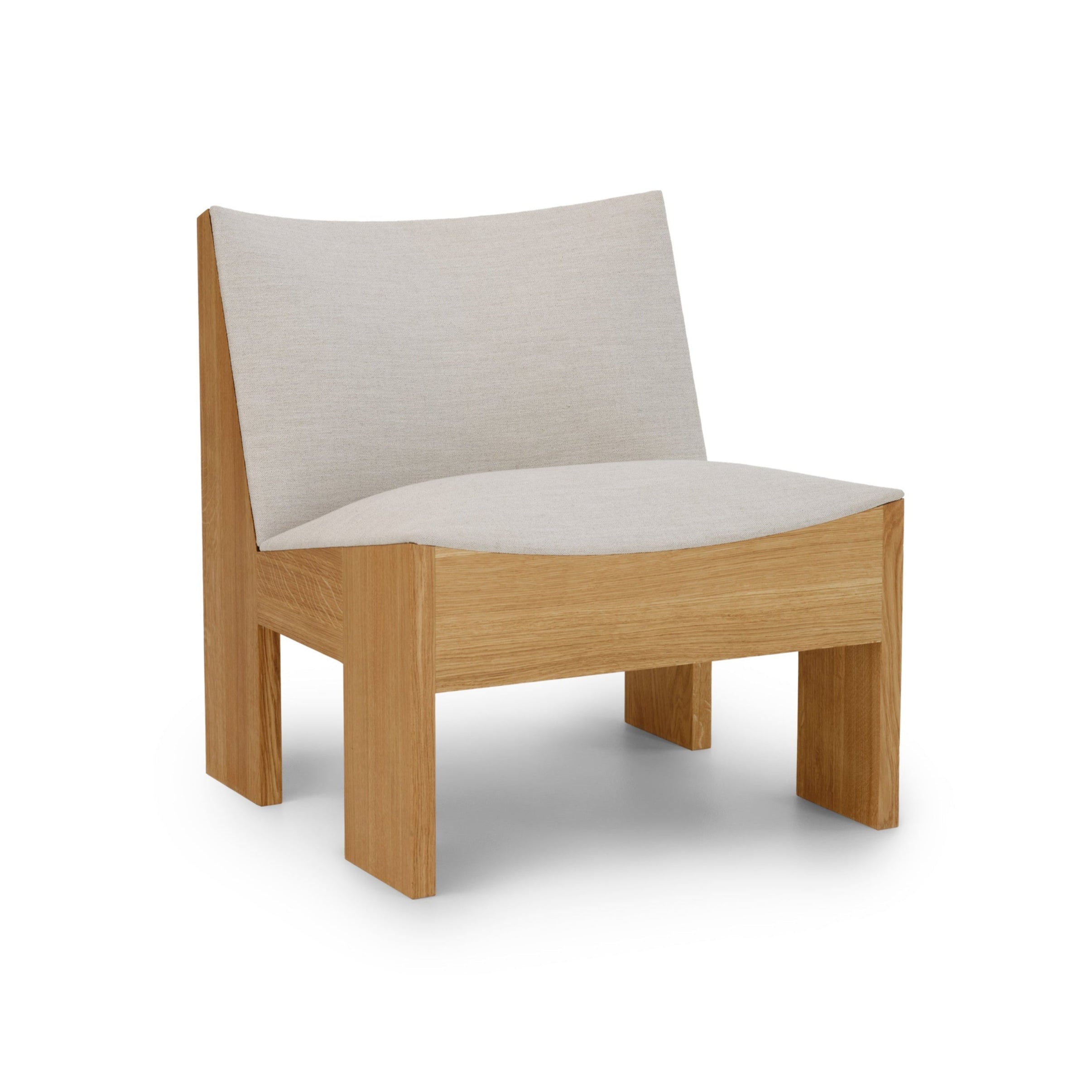 Tenon Zinc Drake Spacedust armchair beige with a dark oak base