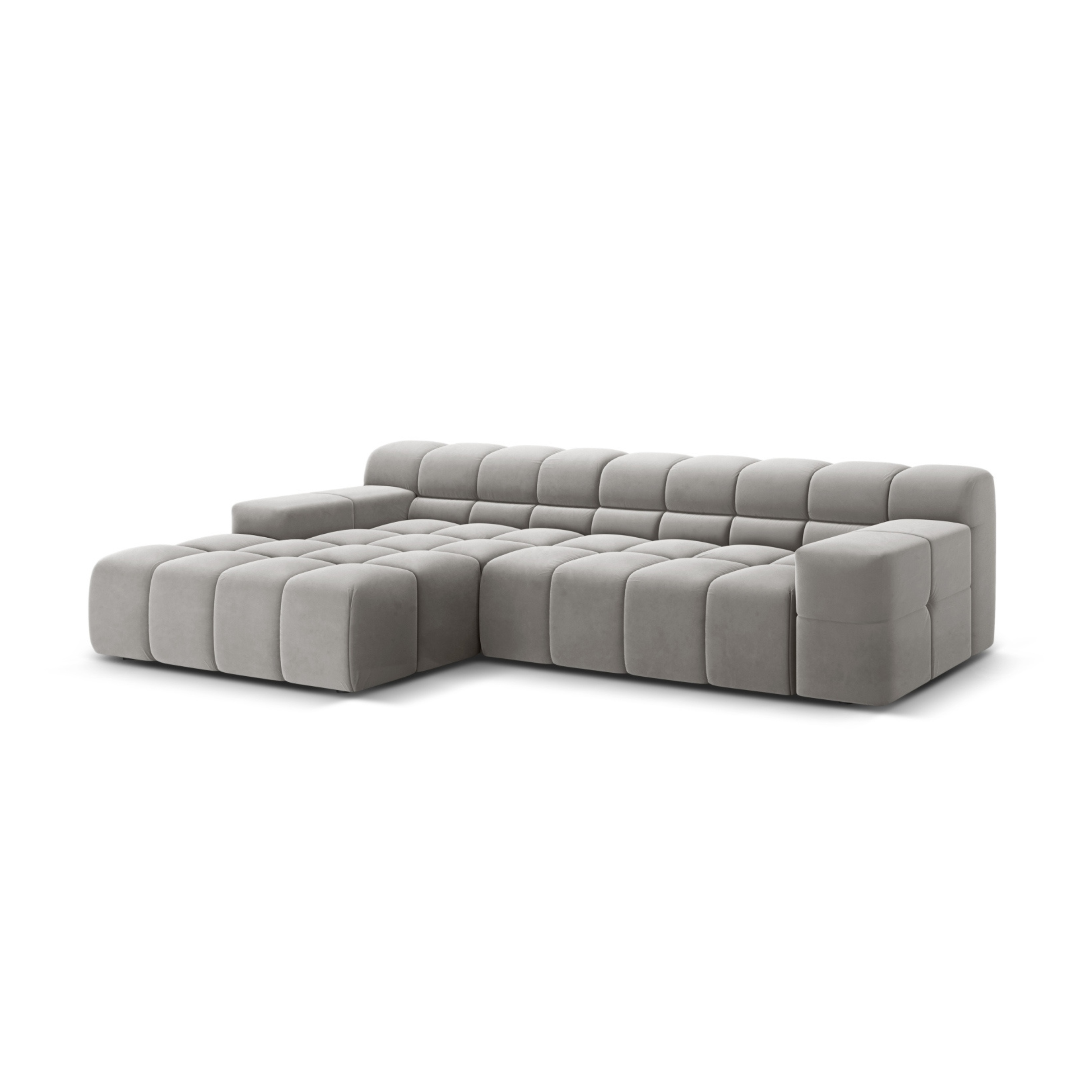 Gray left-facing 3-seater velvet corner sofa AGAVE
