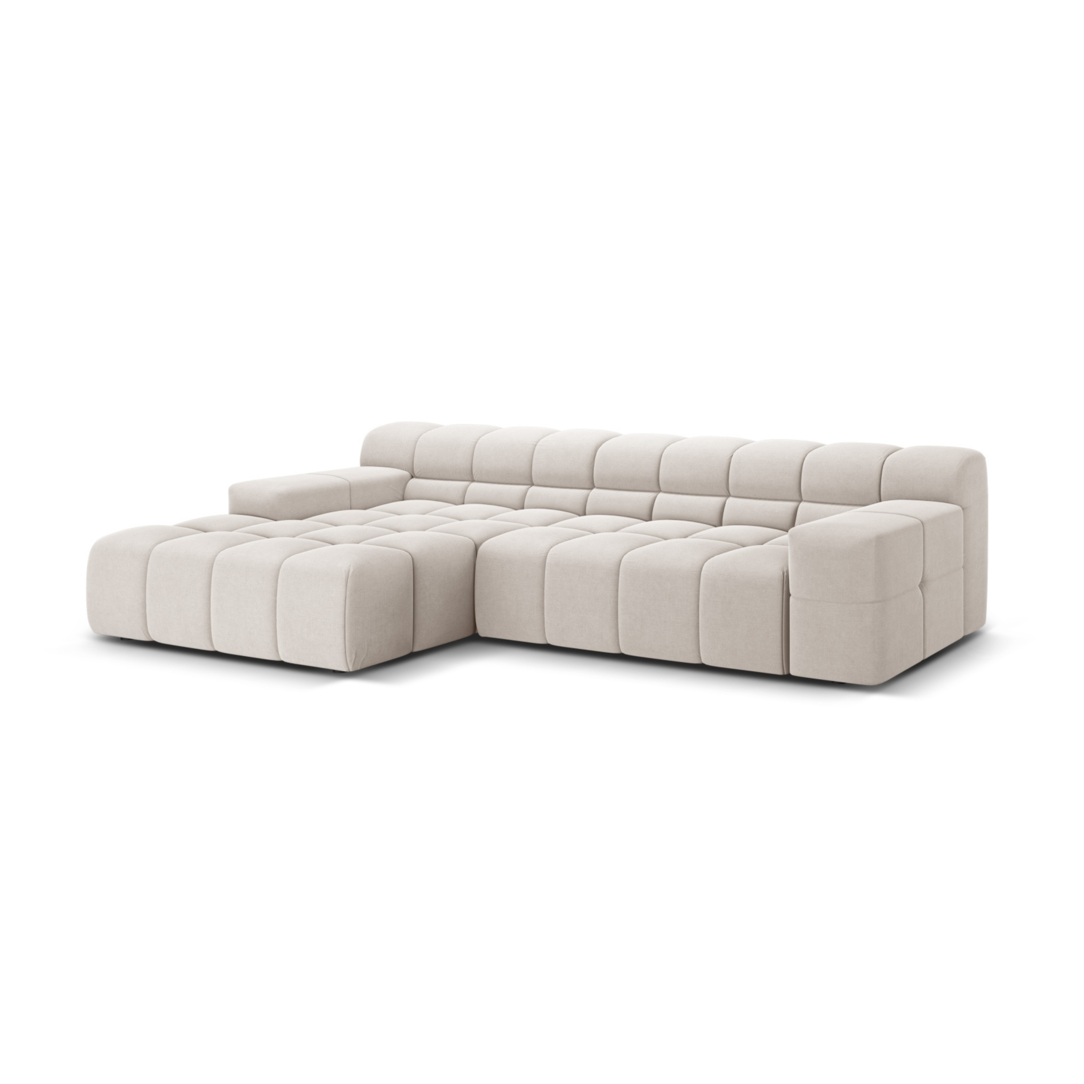 Left-facing 3-seater corner sofa AGAVE light beige chenille