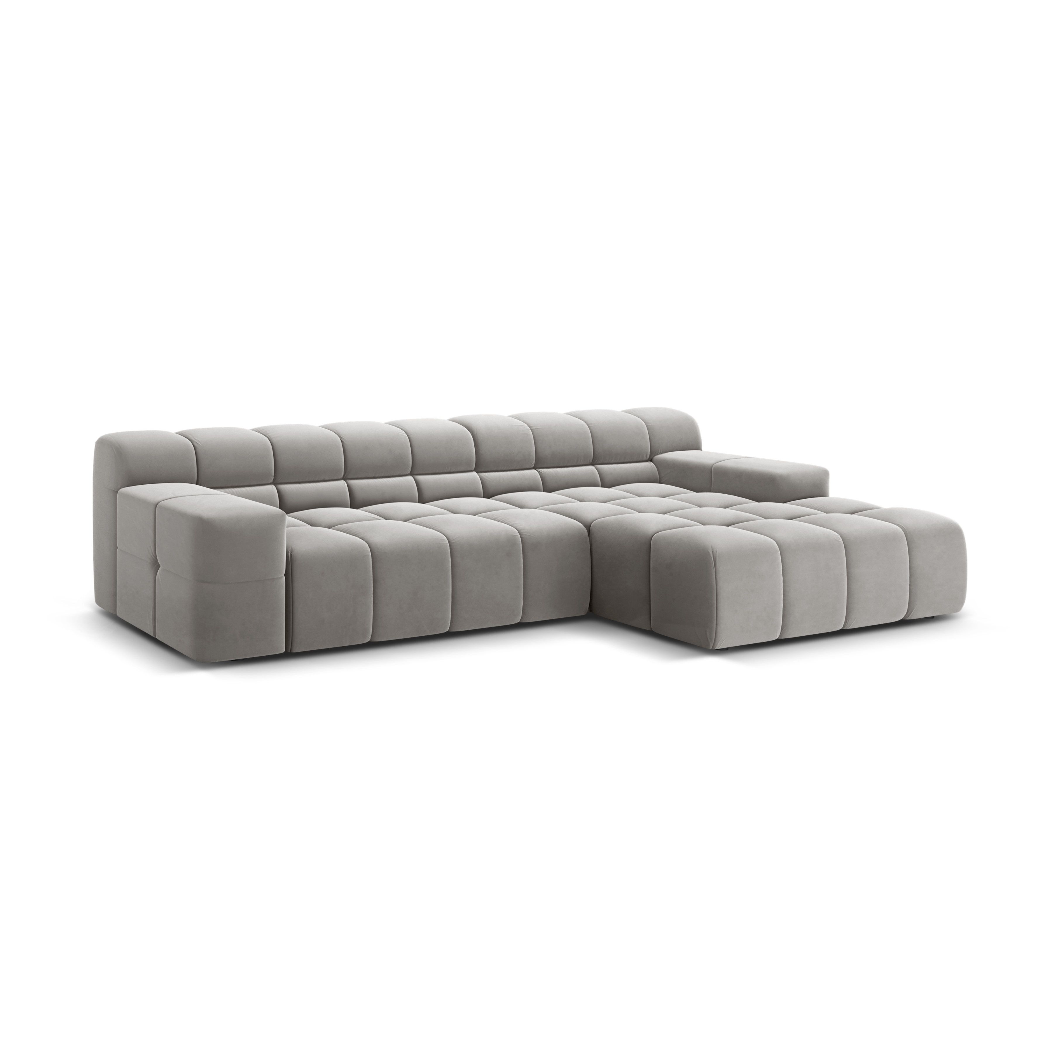 Gray right-facing 3-seater velvet corner sofa AGAVE