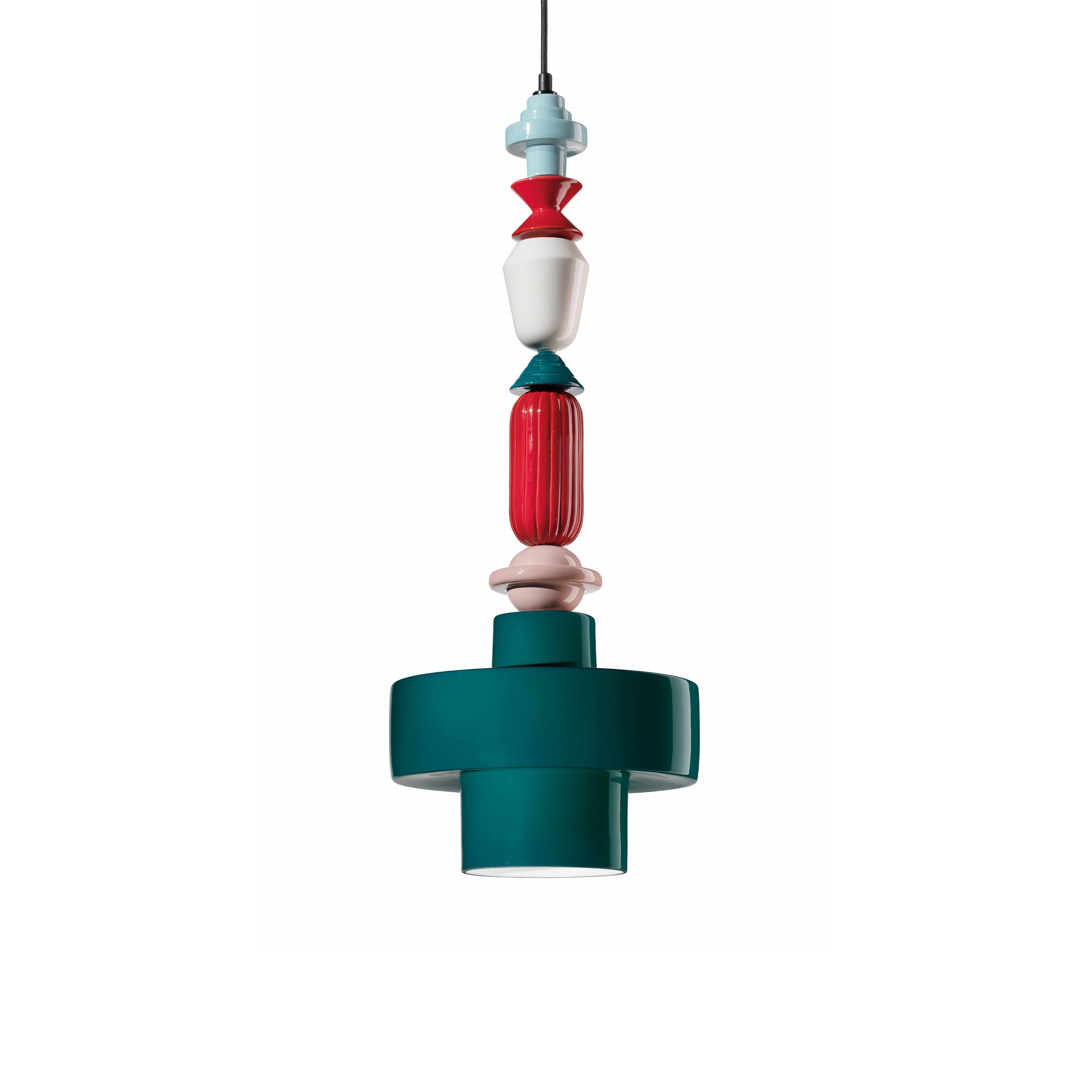 Ceramic pendant lamp LARIAT ROLL petrol blue