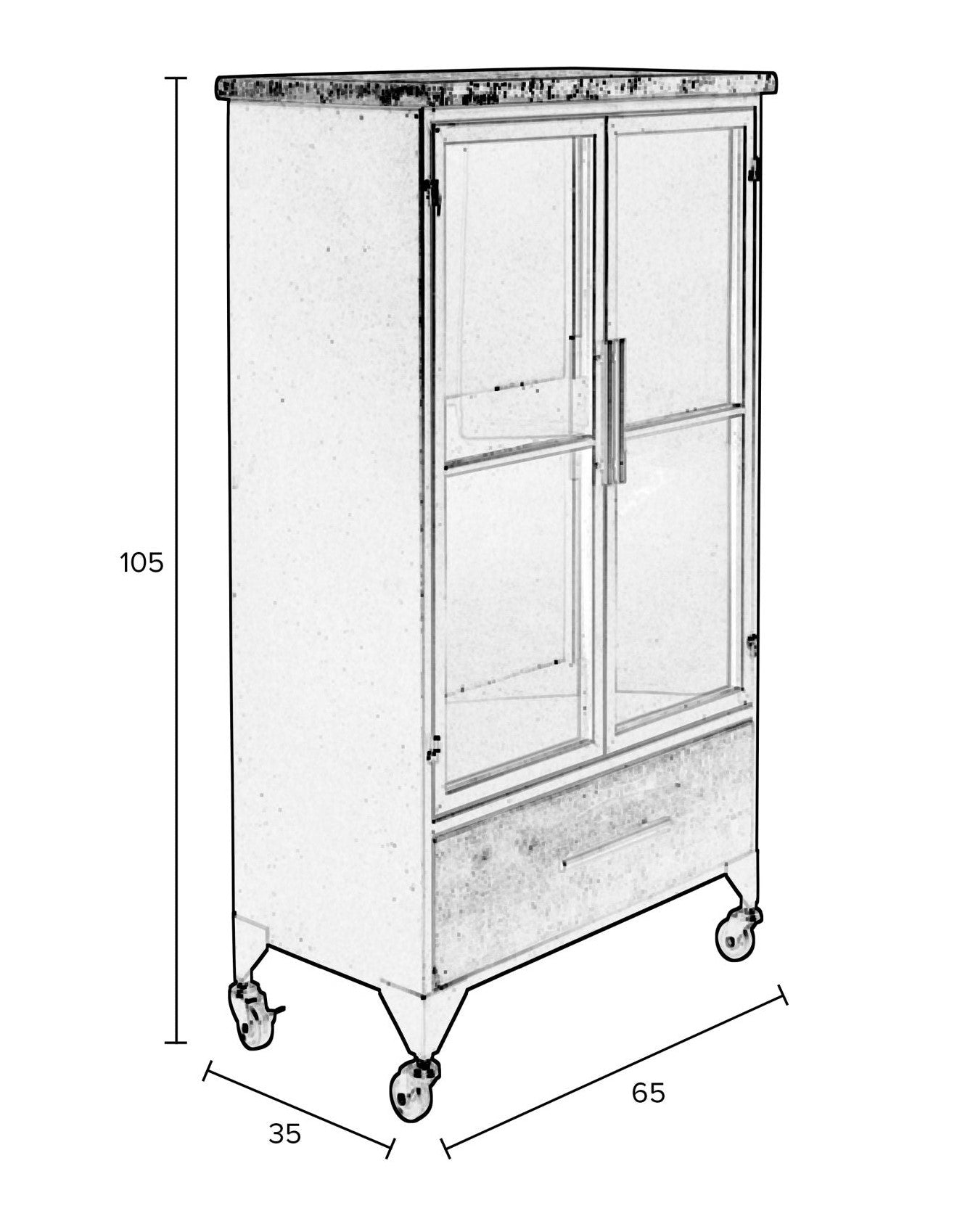 Site Ferre is a combination of class, functionality and elegance, ideal for those who are looking for a practical place to store and a stylish decorative element. Black furniture is distinguished by expressiveness and class, blending with various interior styles, from modern to classic and industrial. The site is made of powder -painted iron, MDF plates with fir veneer and tempered glass. Behind the transparent door there are shelves ideal for displaying books, decorations, dishes or other valuable items. In addition, the upper surface of the site can be used as a place to display decorations or flowers, and the capacious drawer at the bottom offers a discreet storage space. The Ferre website is an elegant piece of furniture that adds character to any interior.
