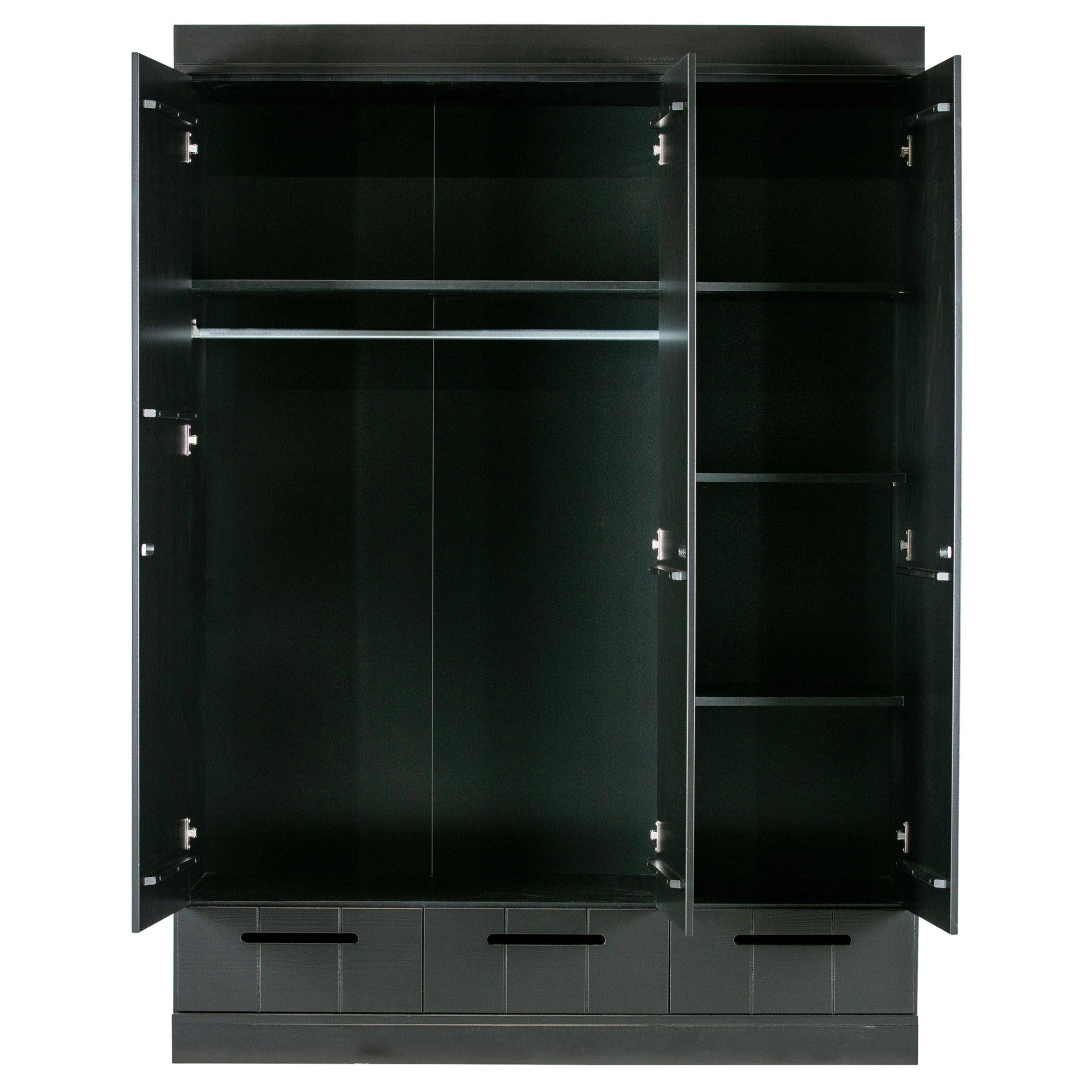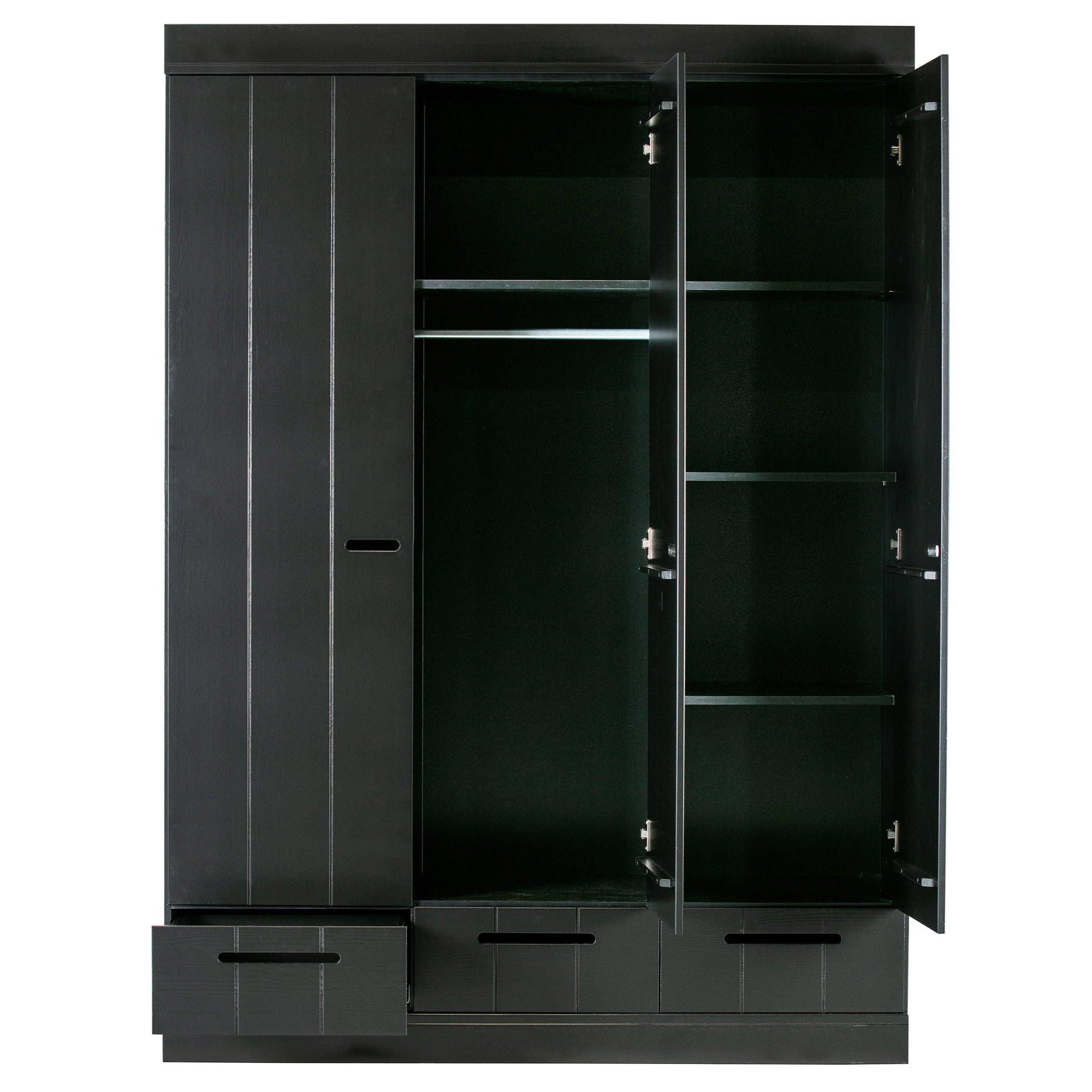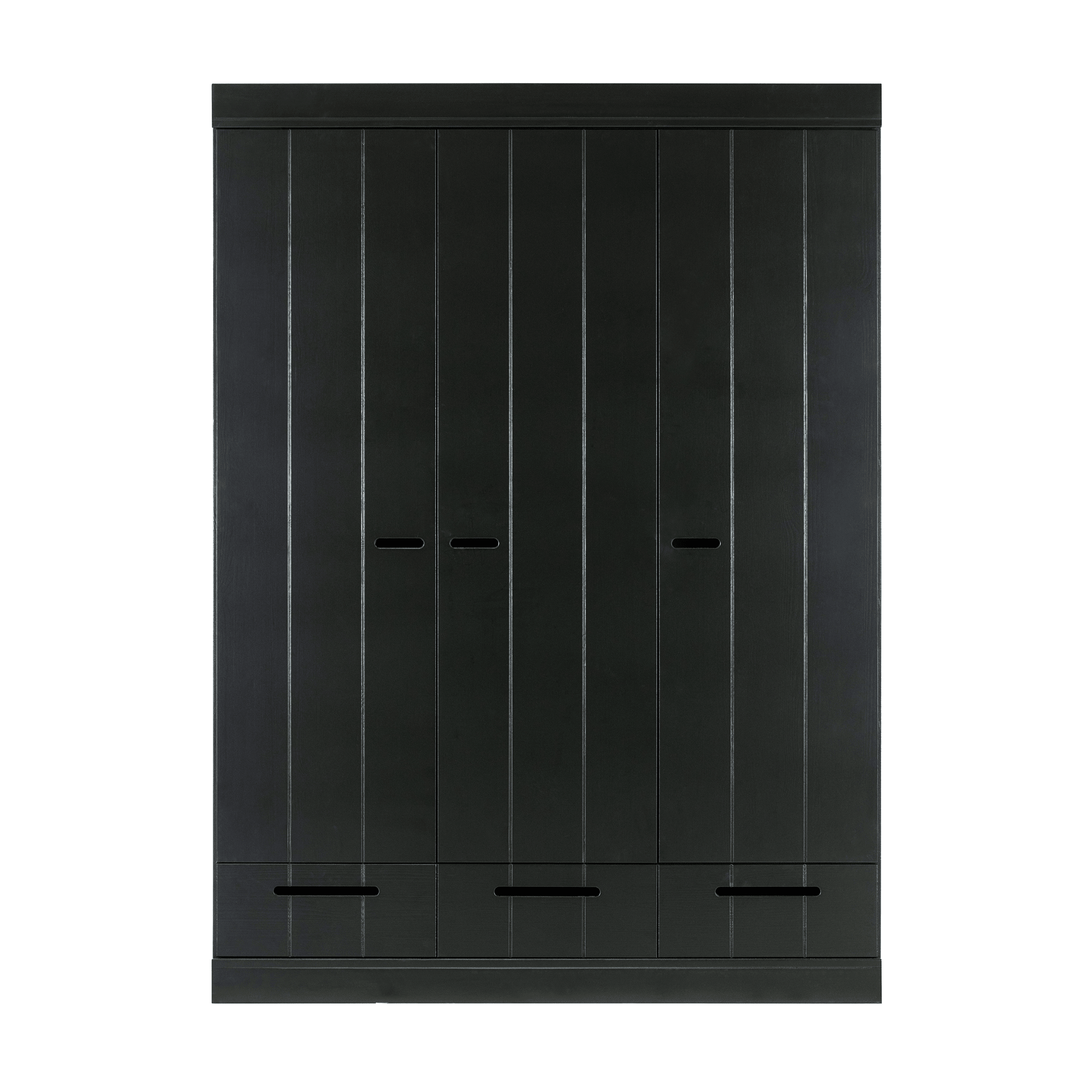 The black Connect wardrobe is made from durable materials that ensure its longevity and durability. Three doors open easily, revealing a storage space that is spacious enough to hold everything you need - from clothes to bedding or towels. Additionally, the wardrobe is equipped with three practical drawers that allow for even better organization and storage of small items.