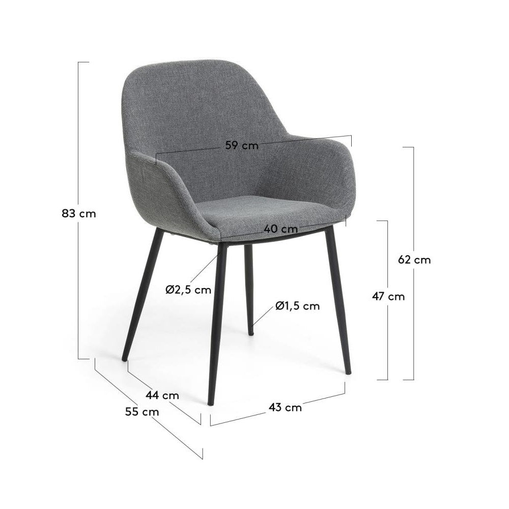 The metal legs with a black finish provide a contrasting, modern element that gives the chair character and stability. This combination of contemporary design and exceptional material makes the chair Konna not only fulfill its functional purposes but also become a decoration for the room.
