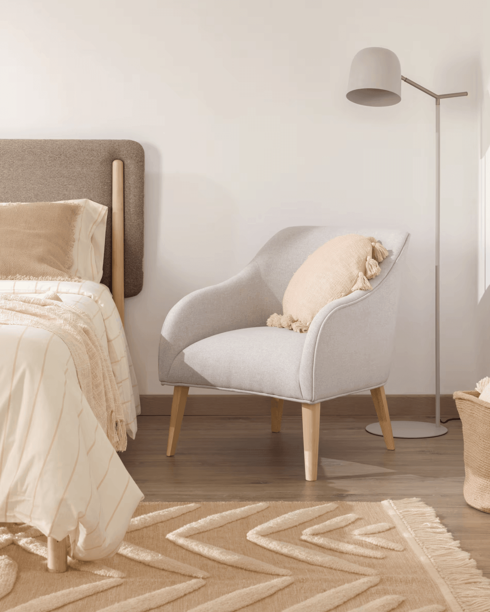 Placed next to sofas or chair in the reading zone, lamp Alish will not only illuminate the space, but also create a pleasant atmosphere conducive to relaxation and rest. Its neutral beige color makes it perfectly blend with various interior arrangements, giving you freedom in creating your personal style.