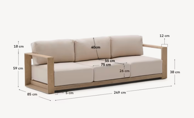 Acacia wood is exceptionally resistant to moisture and microorganisms, ensuring that the sofa maintains its durability even in demanding outdoor conditions. The FSC™ 100% certification confirms that the material comes from responsibly managed forests. The Sofa Ambra is an excellent choice for those who value style, comfort, and ecological quality. Its timeless design and durability make it a perfect fit for terrace, garden, and living room arrangements, giving them a warm and natural character.