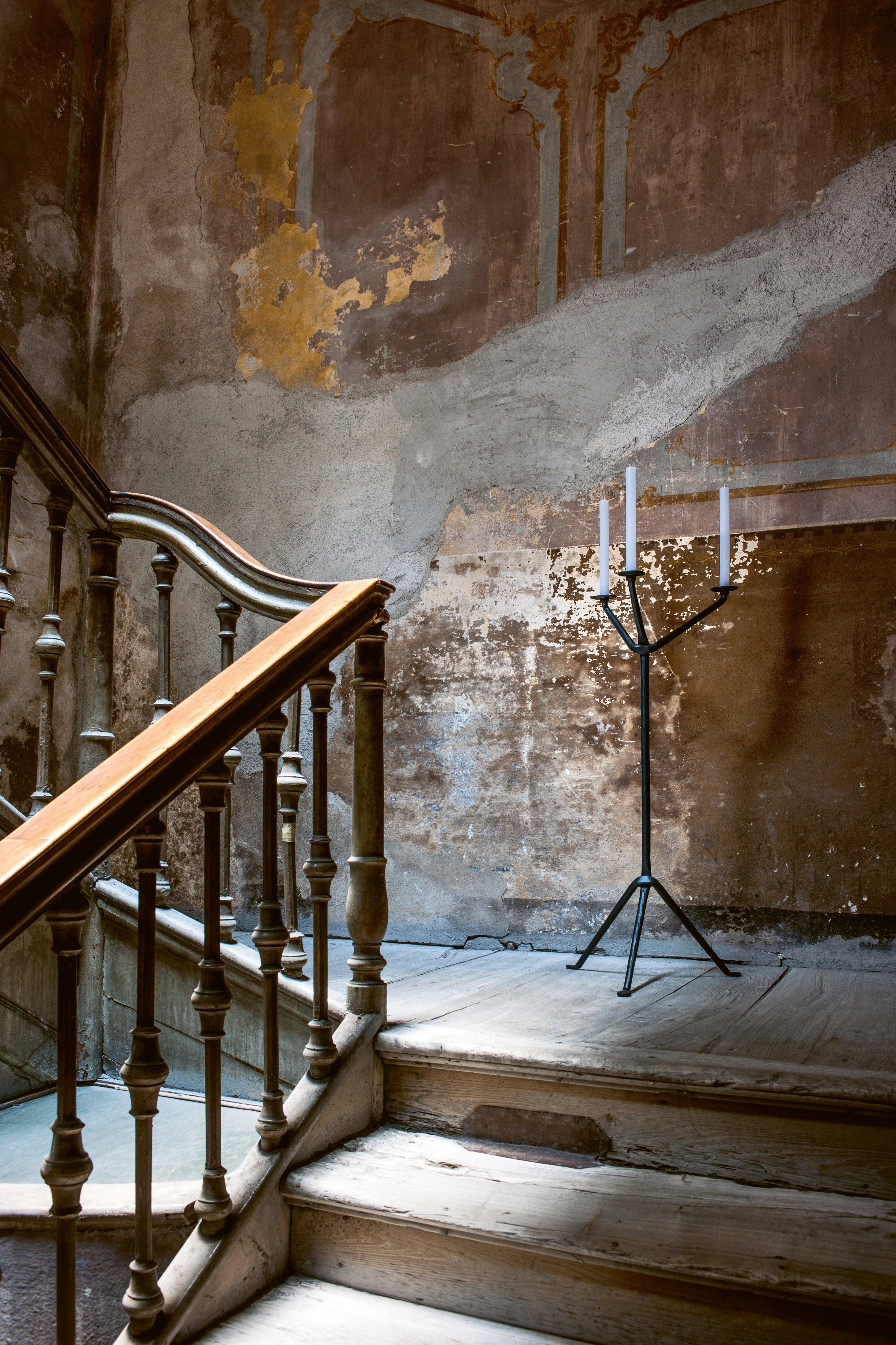 Floor candle holder with one, three, or six arms from the Officina collection by Magis, designed by the renowned duo Ronan & Erwan Bouroullec, is a unique interior design element that combines raw aesthetics with elegant form. Made from durable steel, it ensures stability, resistance to damage, and a timeless appearance. Its simple, geometric construction fits perfectly in both modern and classic arrangements.