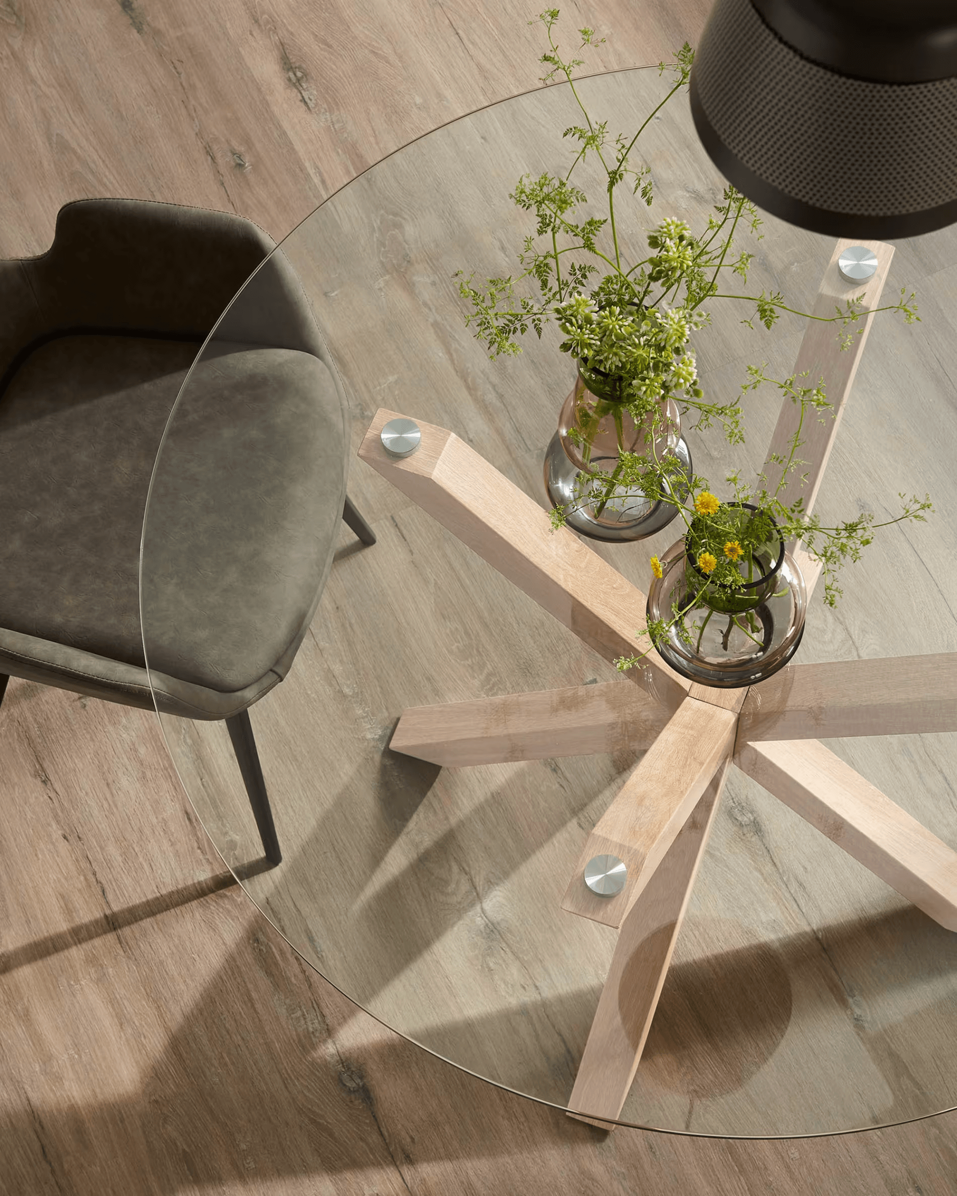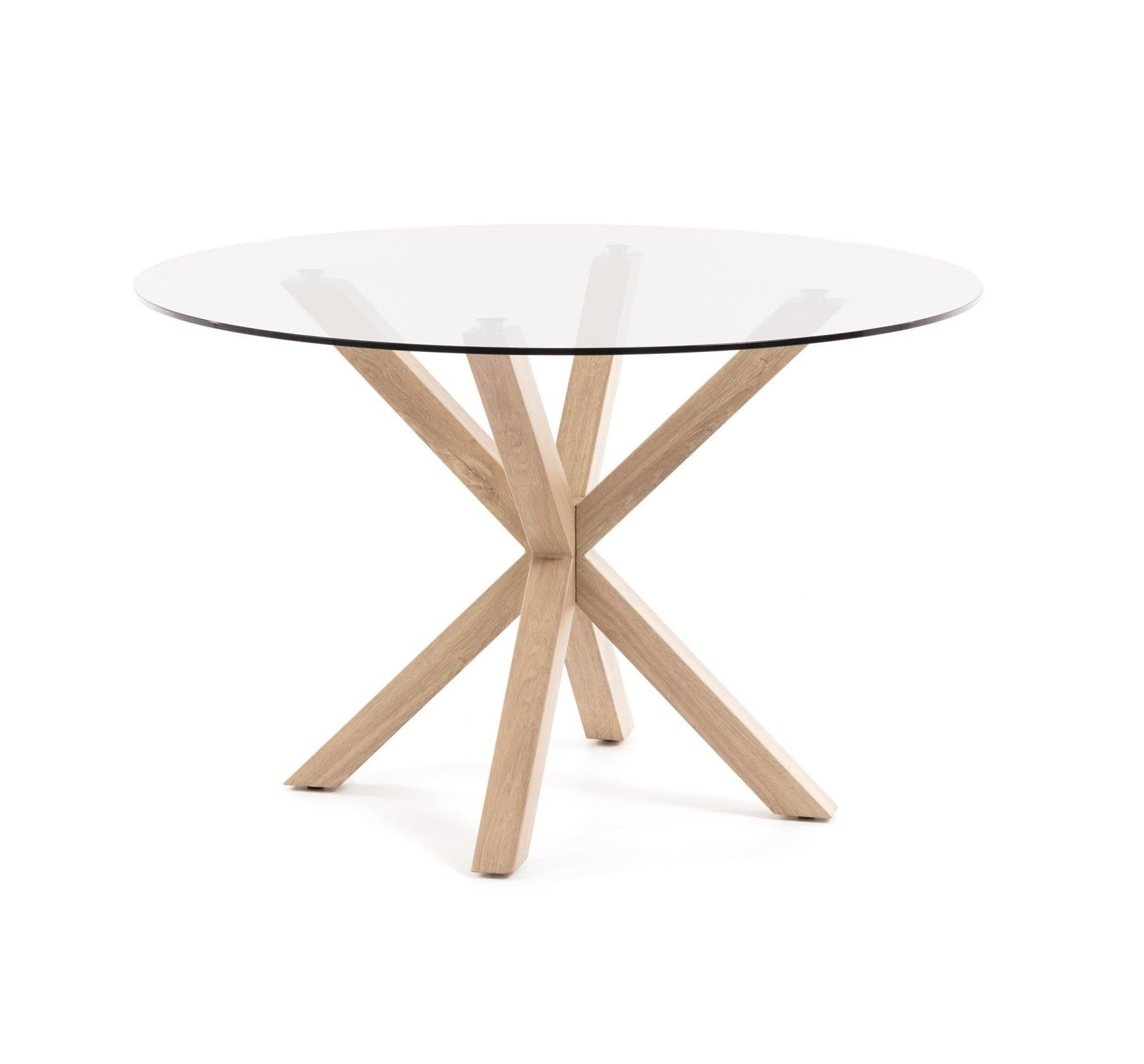 Stół okrągły ARGO szklany z drewnianą podstawą La Forma    Eye on Design