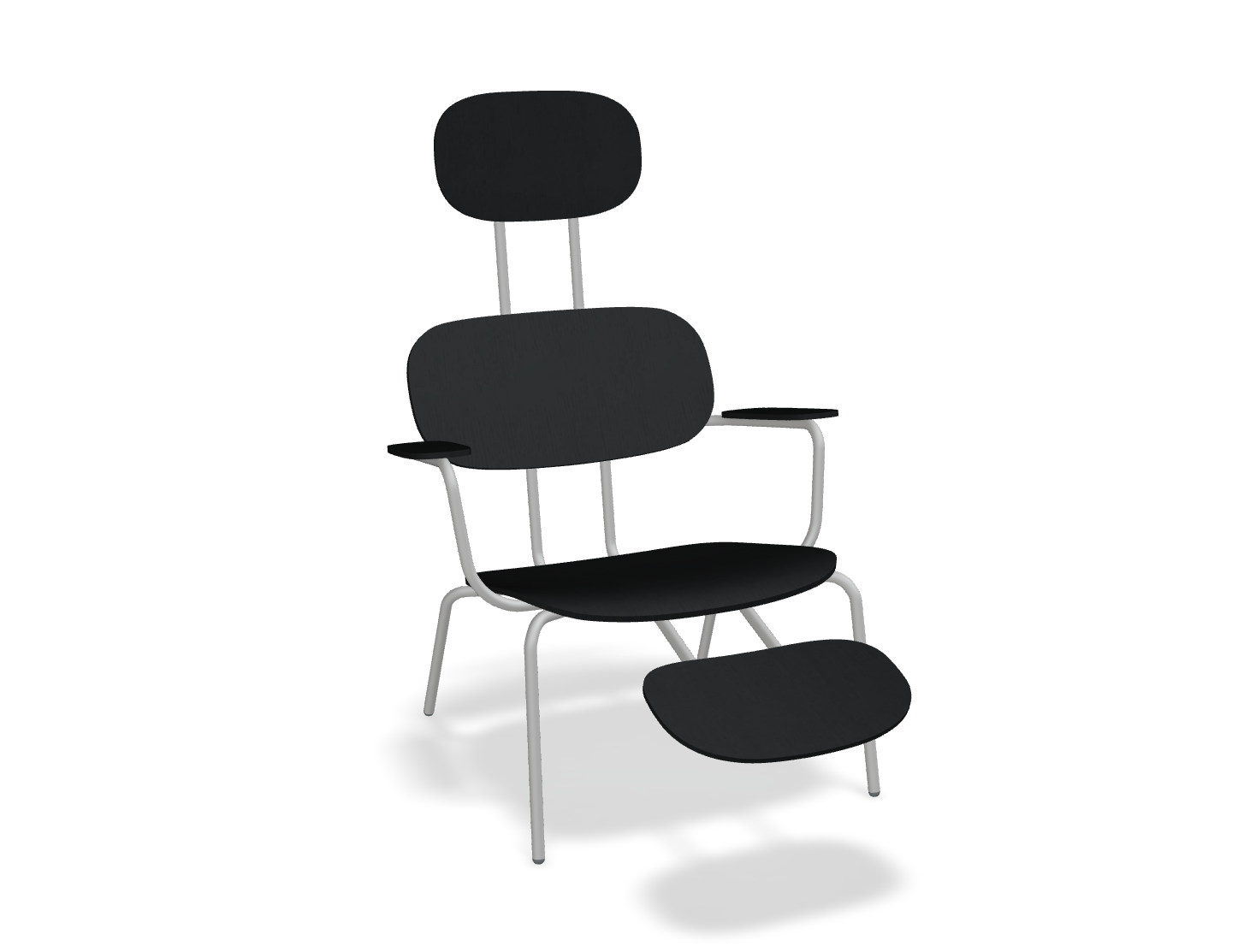 Chair with headboard From the New School collection is a new level of comfort, designed by Studio Form US with Love. The extended version of the chair in this series, equipped with comfortable armrests, an integrated footrest and a headrest, provides an optimal seat angle and a deep relaxing position. Armchair Ideally suited to the lounge zones, hotel lobby or living rooms, and a wide range of upholstery fabrics and the option of a larger, separate footrest additionally increase comfort.