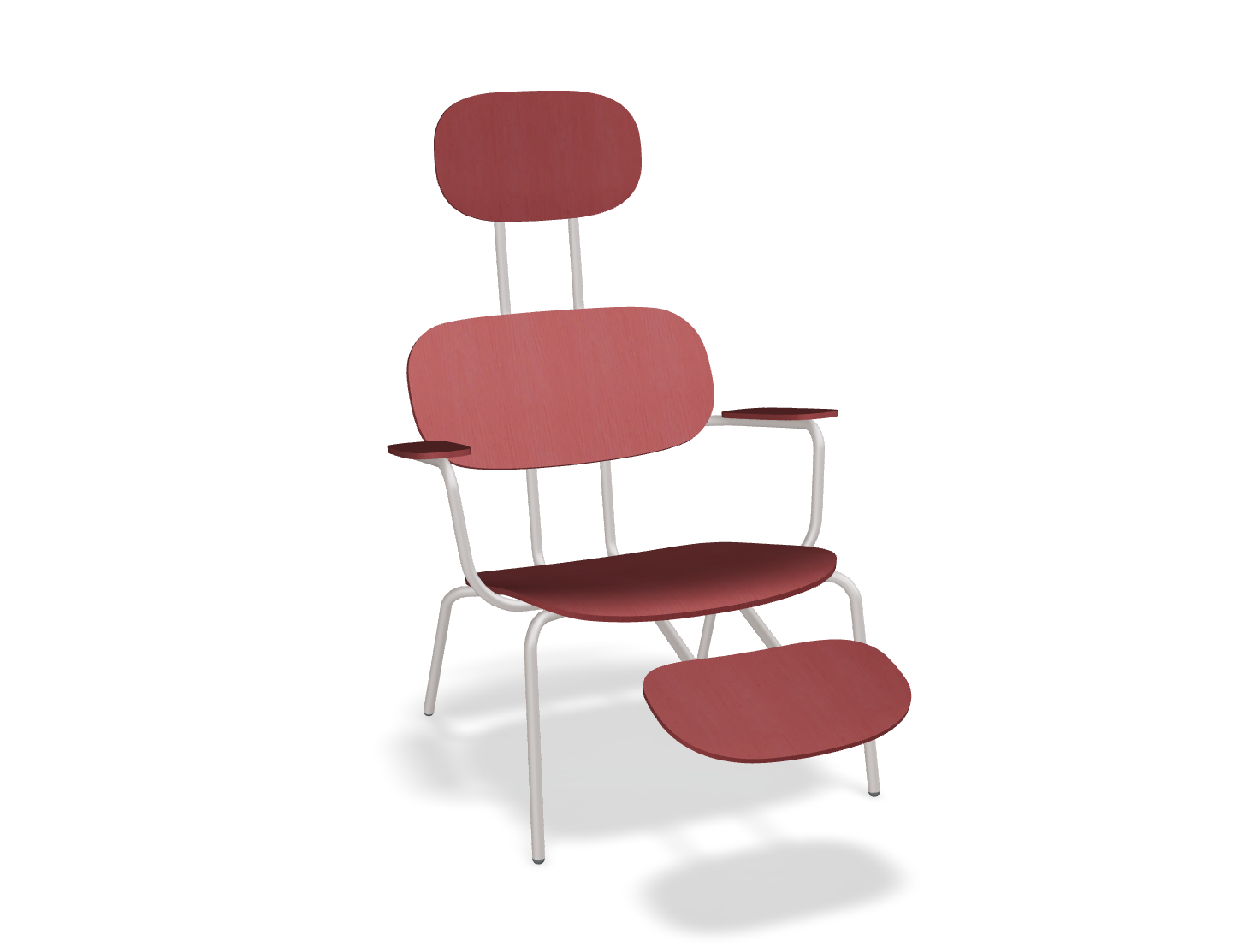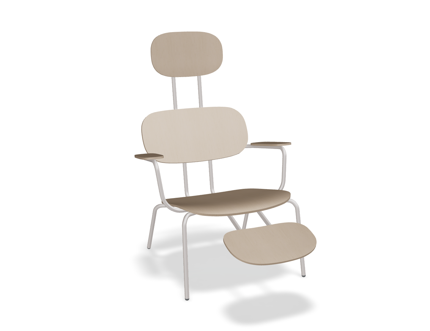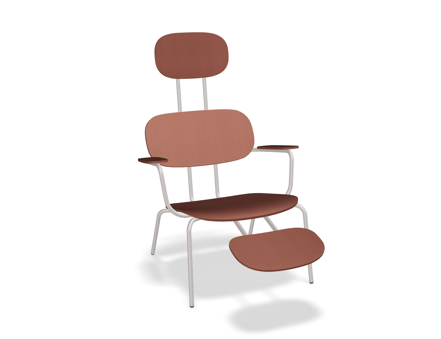 Chair with headboard From the New School collection is a new level of comfort, designed by Studio Form US with Love. The extended version of the chair in this series, equipped with comfortable armrests, an integrated footrest and a headrest, provides an optimal seat angle and a deep relaxing position. Armchair Ideally suited to the lounge zones, hotel lobby or living rooms, and a wide range of upholstery fabrics and the option of a larger, separate footrest additionally increase comfort.