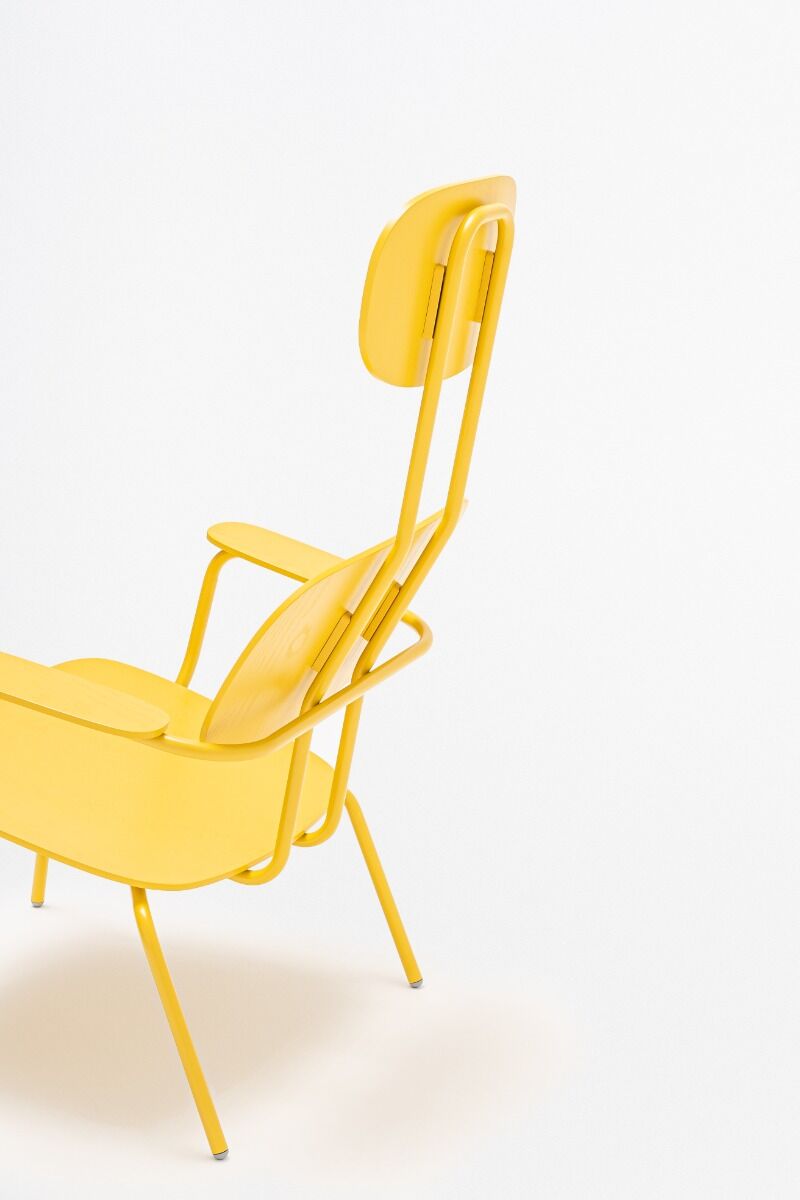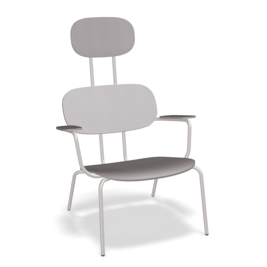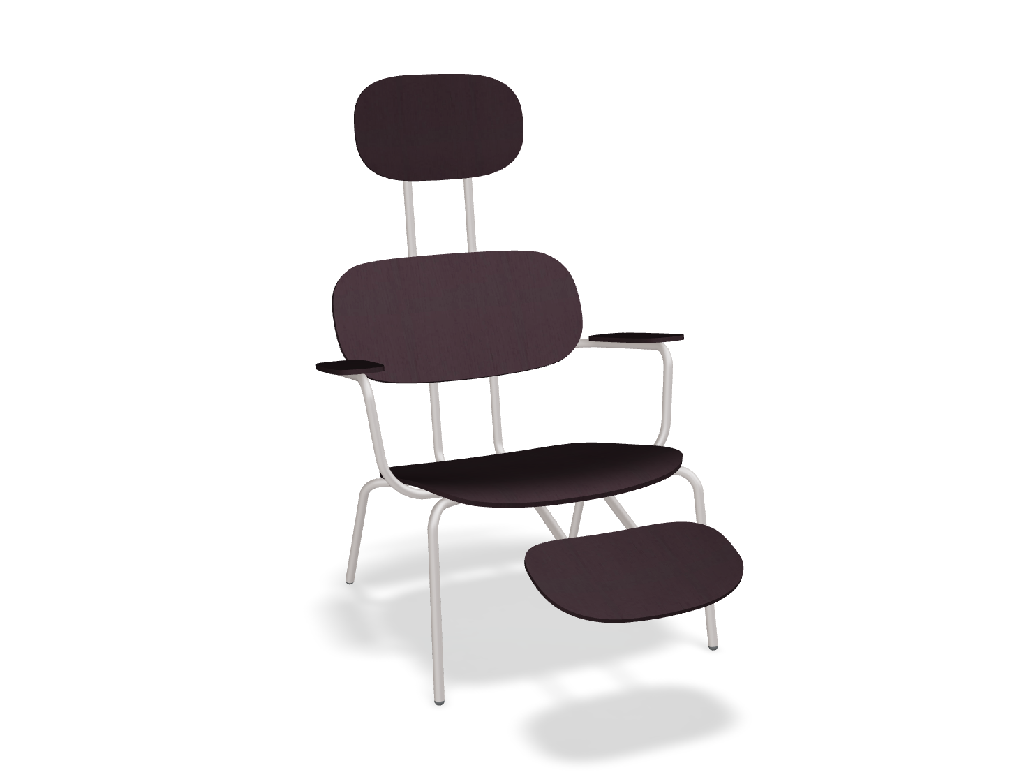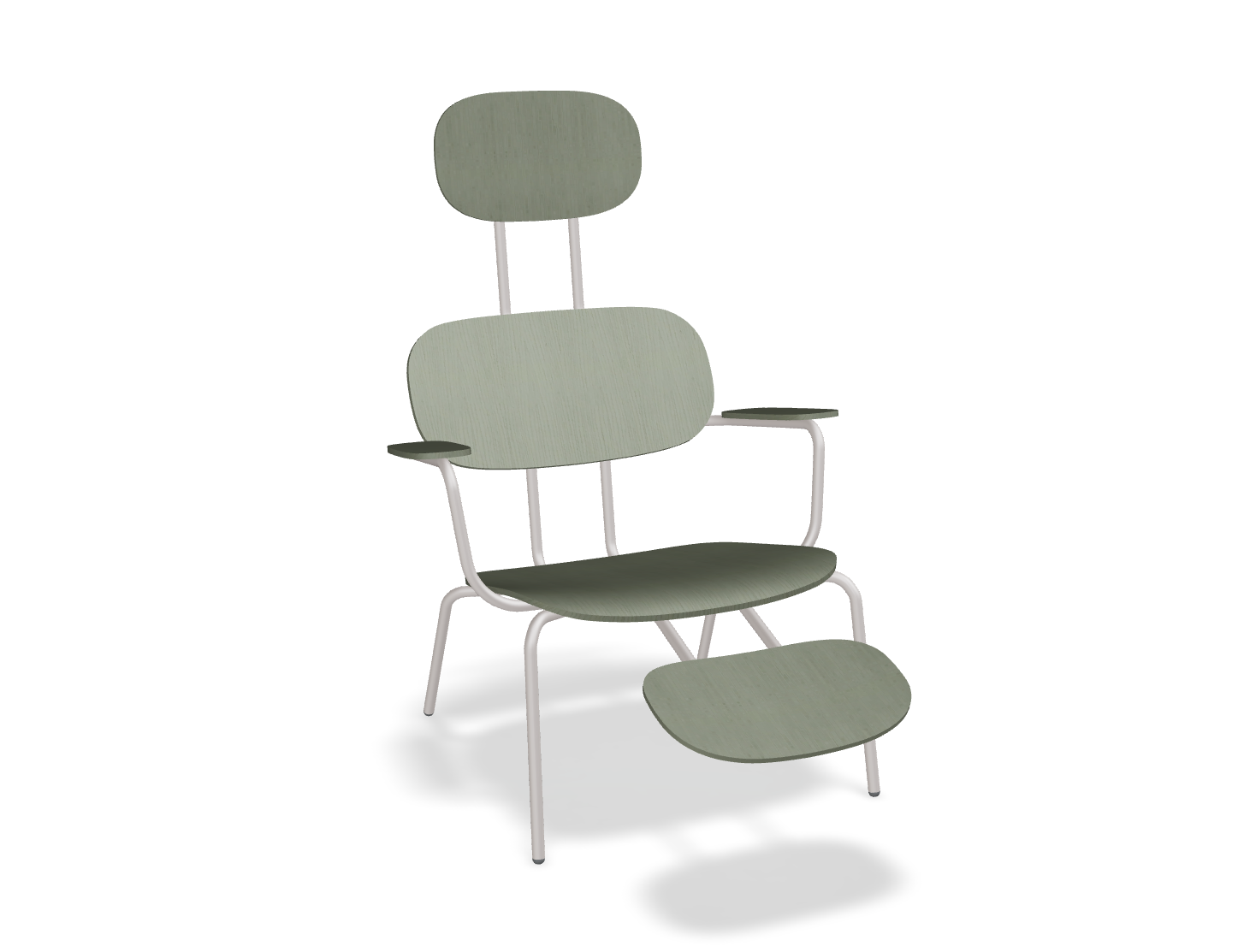 Chair with headboard From the New School collection is a new level of comfort, designed by Studio Form US with Love. The extended version of the chair in this series, equipped with comfortable armrests, an integrated footrest and a headrest, provides an optimal seat angle and a deep relaxing position. Armchair Ideally suited to the lounge zones, hotel lobby or living rooms, and a wide range of upholstery fabrics and the option of a larger, separate footrest additionally increase comfort.