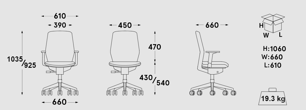 Armchair with upholstered EVO backrest adjustable base with wheels for hard surface