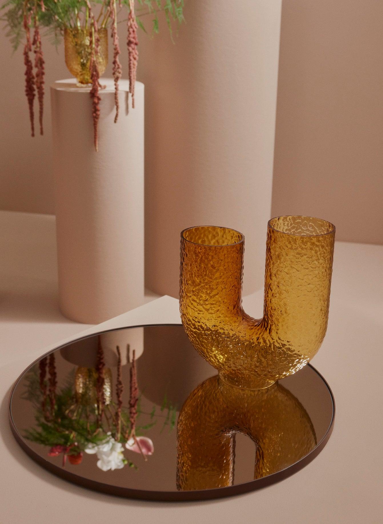 Vases Arura is made of blown glass, which makes each piece unique. It is a great example of an eccentric design that was created while playing with form. Ddecorative the arms of the vase are its distinctive feature — the vase Arura has modernand at the same time an elegant look. The bubbly and uneven surface gives mu note awangardy.