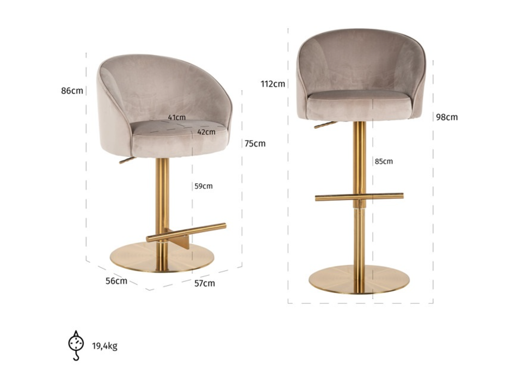 A stable metal base in a golden finish gives the chair a modern, glamor character. Height adjustment, rotary mechanism and a practical footrest make a practical choice for the kitchen, dining room or elegant bar. It is an ideal solution for people who value style and comfort.