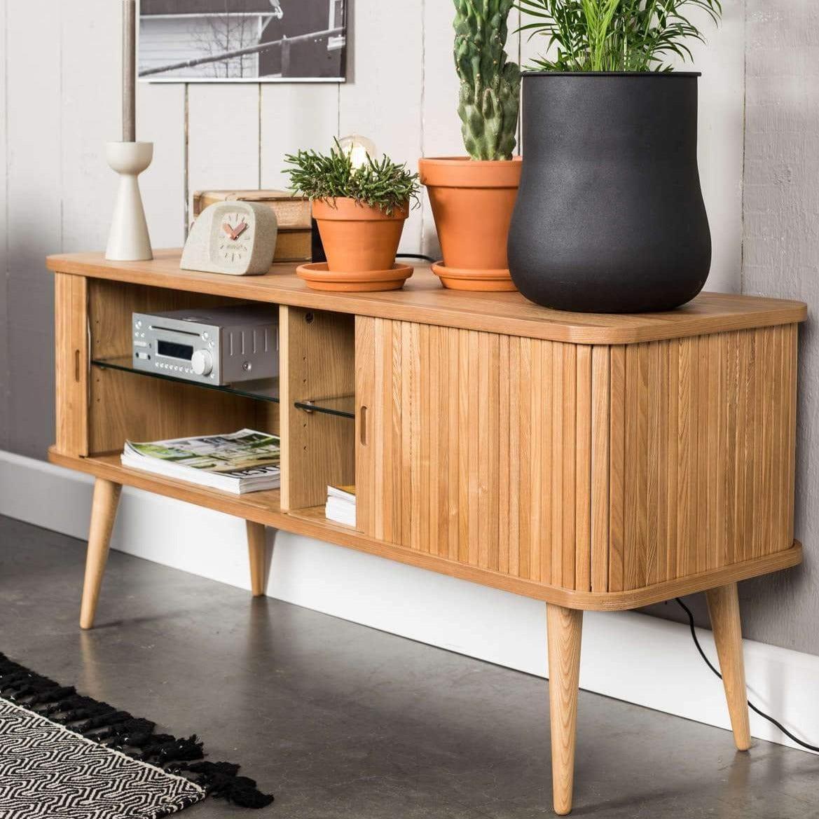 Sideboard is made of durable MDF board covered with ash wood. The legs are made of solid rubber wood. Barbier will beautifully complement the interior of a dining room, bedroom, or hallway. Additionally, it will create a unique arrangement with the other furniture from the same series.