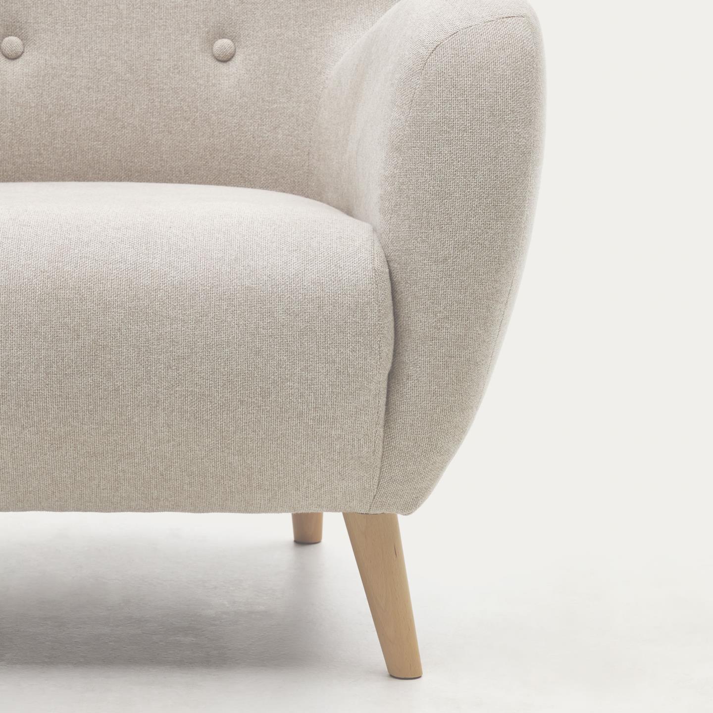 This beige, chenille chair is not afraid to experiment with traditional patterns, combining the refined style of past decades with a modern approach to design. The buttons on the back add subtlety and elegance to the chair, creating a stunning capitonné effect that highlights the finesse of the entire design.
