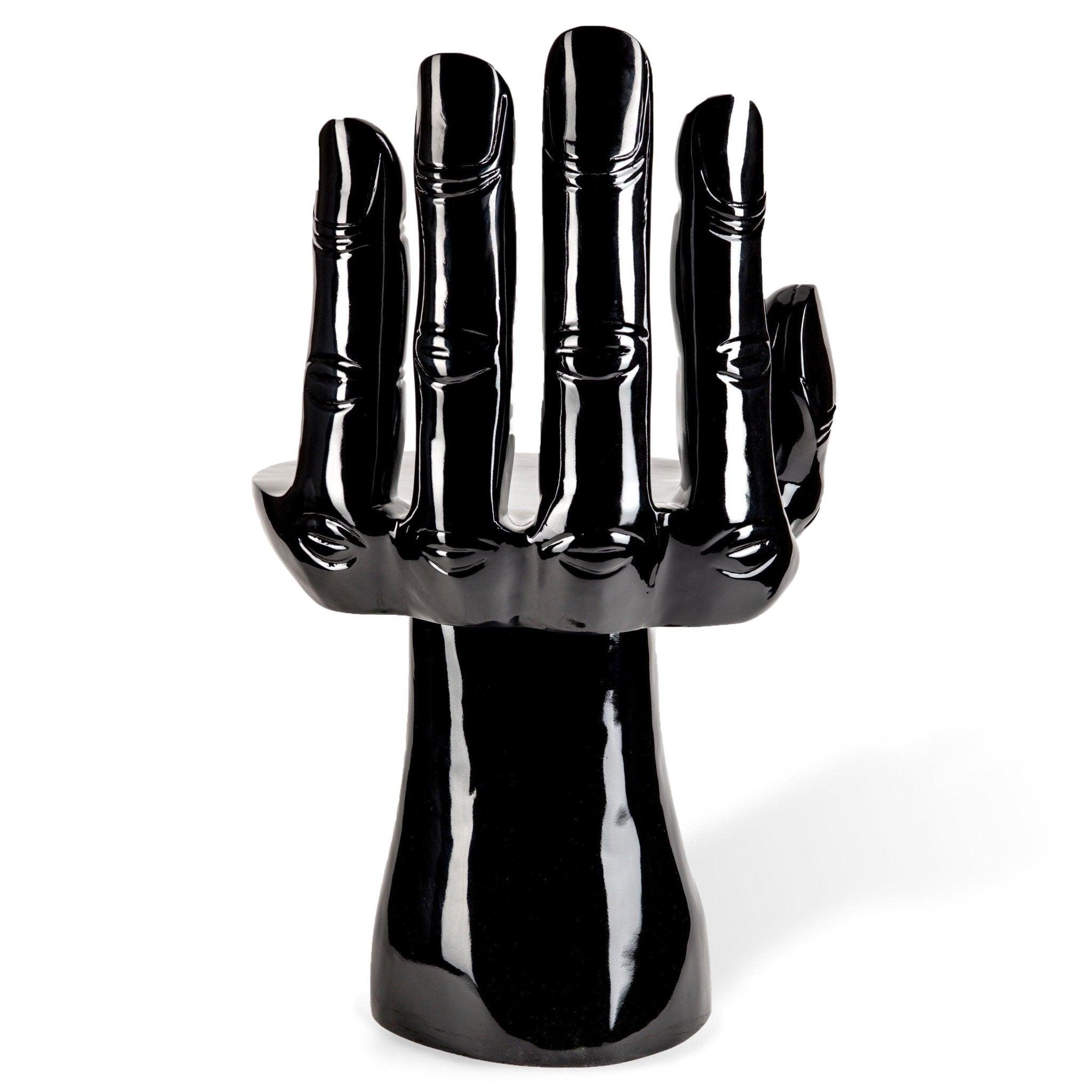 Chair The Hand in black is an eccentric design that delights with its appearance and unconventional shape. This model is not only a comfortable seat but also an unusual decoration that will bring character and intriguing design to almost any interior.