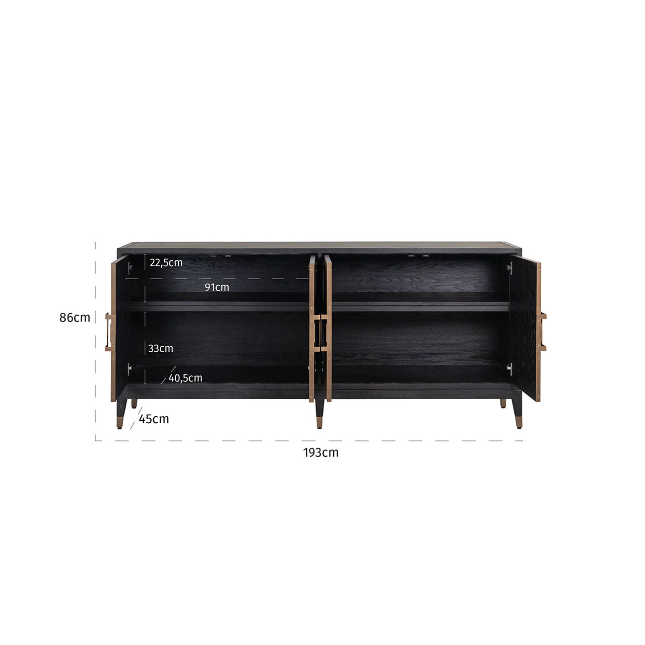 Dresser Bloomingville is not only a beautiful piece of furniture, but also a functional part of interior equipment. Four built -in shelves, hidden behind elegant doors, offer a lot of space for storing various objects, from small things to larger equipment. This is a practical solution that harmonizes perfectly with the sophisticated style of furniture.