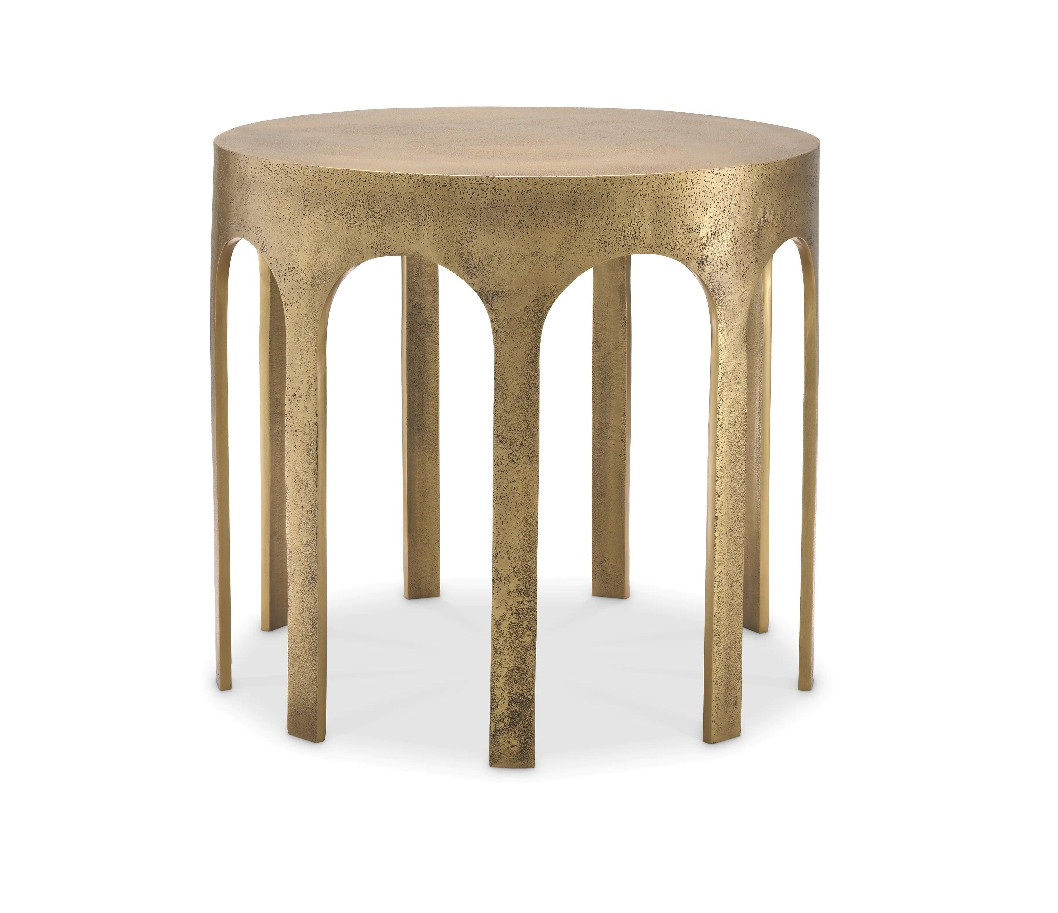 Side table Gardini is the essence of the classics in a compact form, ideal for those who want to draw on tradition, and at the same time optimize the space. The brass finish in the vintage style brings to mind the luxurious interiors of old palaces, while its unique, textured surface adds a modern touch, creating a bridge between the past and the present.