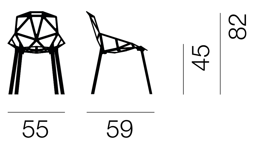 Chair One is made from durable and resilient materials, ensuring its longevity and resistance to damage. The chair's structure is based on triangular shapes, giving it a modern and unconventional character. The base of the chair is made of concrete, painted in a transparent natural or black color, adding an extra touch of elegance.