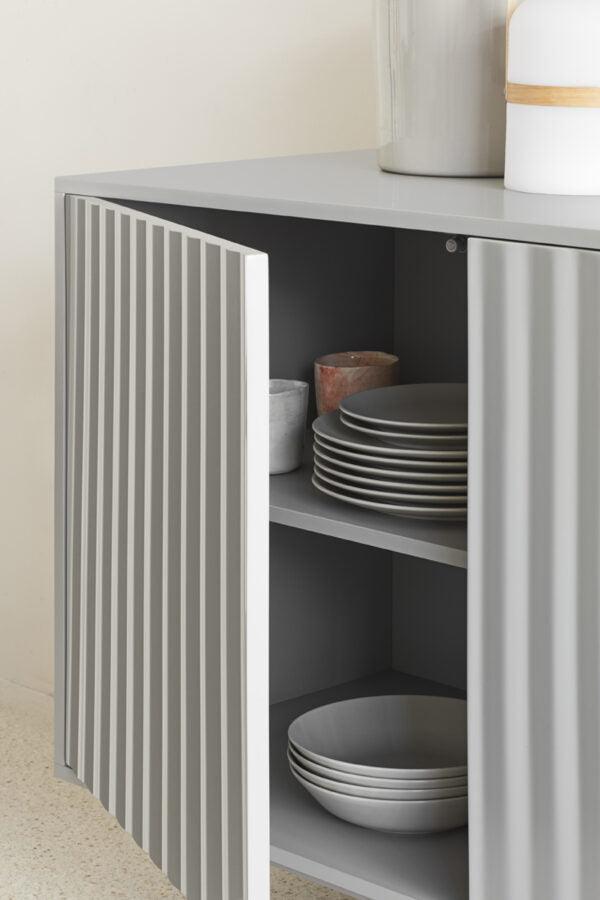The Sierra sideboard is inspired by mountain depths, on which the perception of volume is affected by light fluctuations.