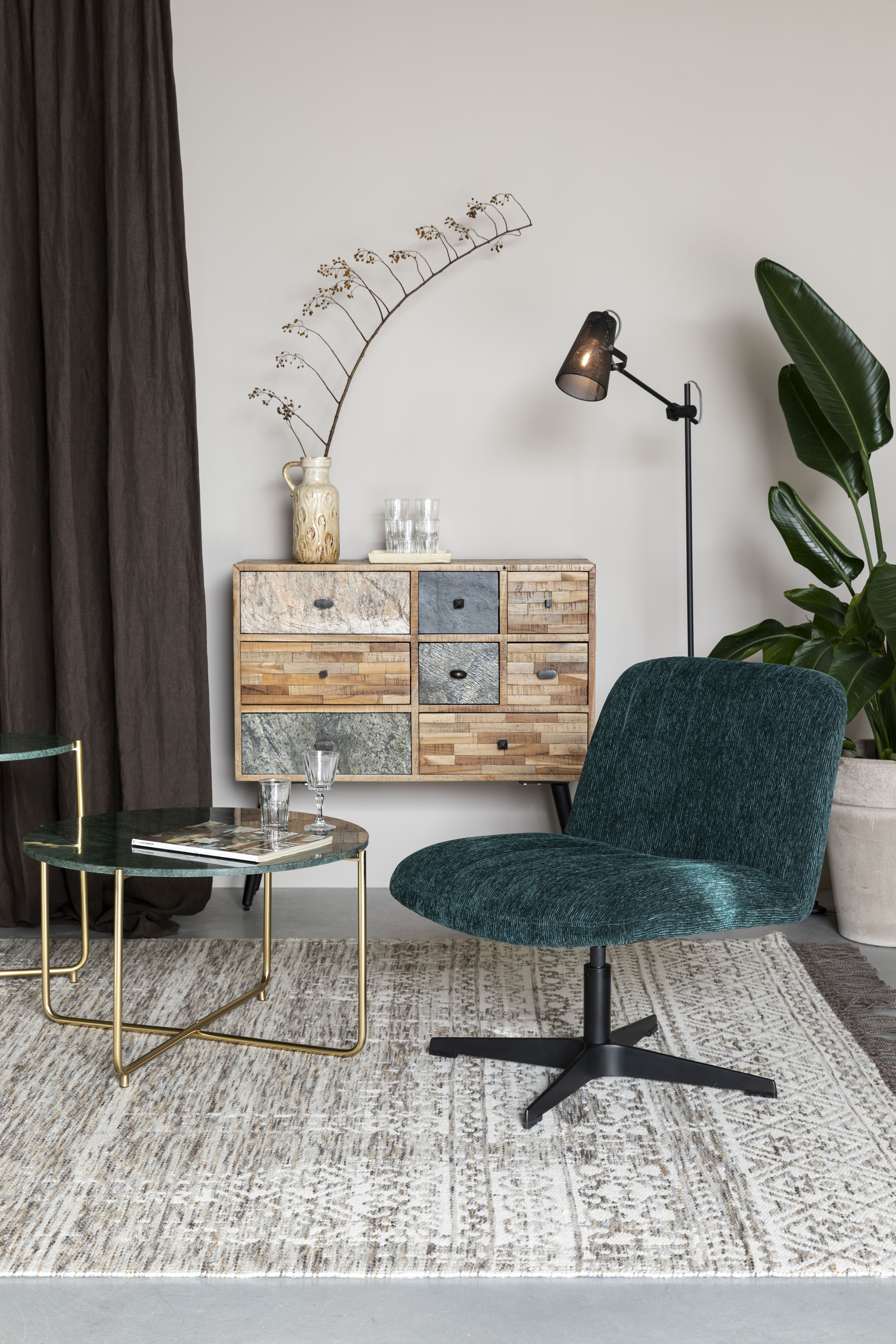 San is a stylish and functional piece of furniture, perfect for modern interiors. Made from recycled teak wood with a teak veneer, this dresser captivates with its natural brown finish. Stable metal legs coated in a matte black finish add a contemporary touch, highlighting the elegance and sturdiness of the design. San beautifully combines style and functionality, making it an elegant addition to any interior decor.