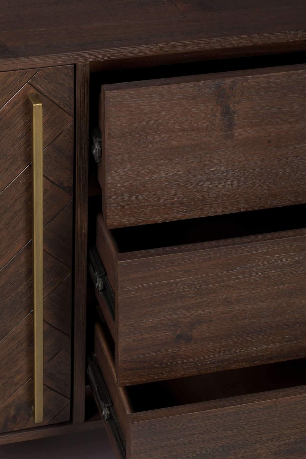 Class Chest of Drawers is a unique piece that combines elegance and minimalism. The Class collection is made from high-quality MDF board and veneer crafted from acacia wood. The characteristic herringbone pattern gives the chest of drawers a touch of class and a modern character.
