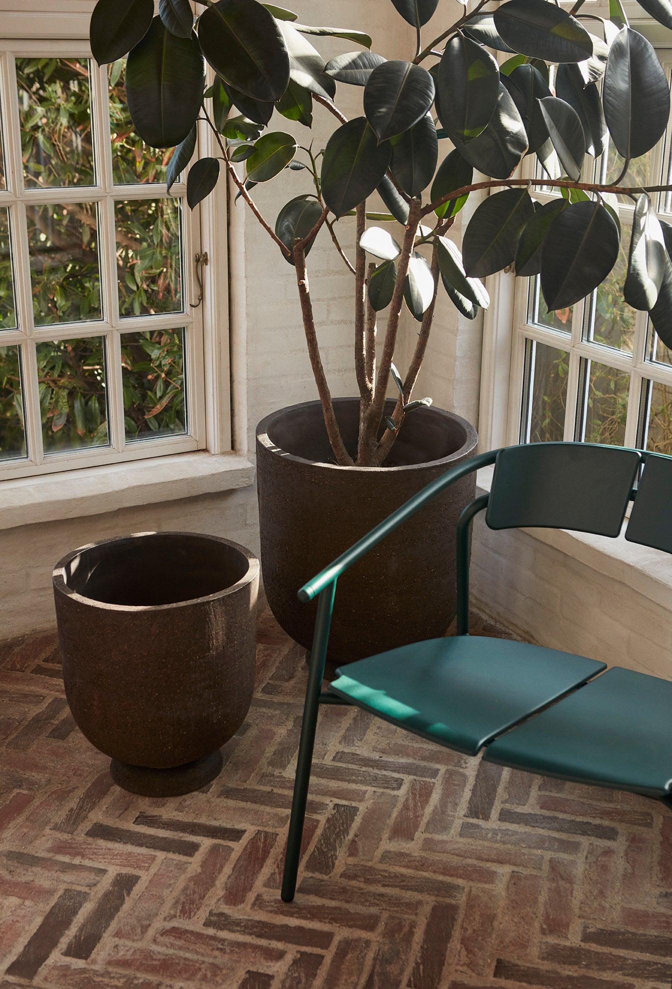 Place two pots next to each other on the terrace to add a personal touch, or showcase your favorite plants in the dining room or living room. The collection is made from clay, whose vibrant warmth and color complement almost any interior.