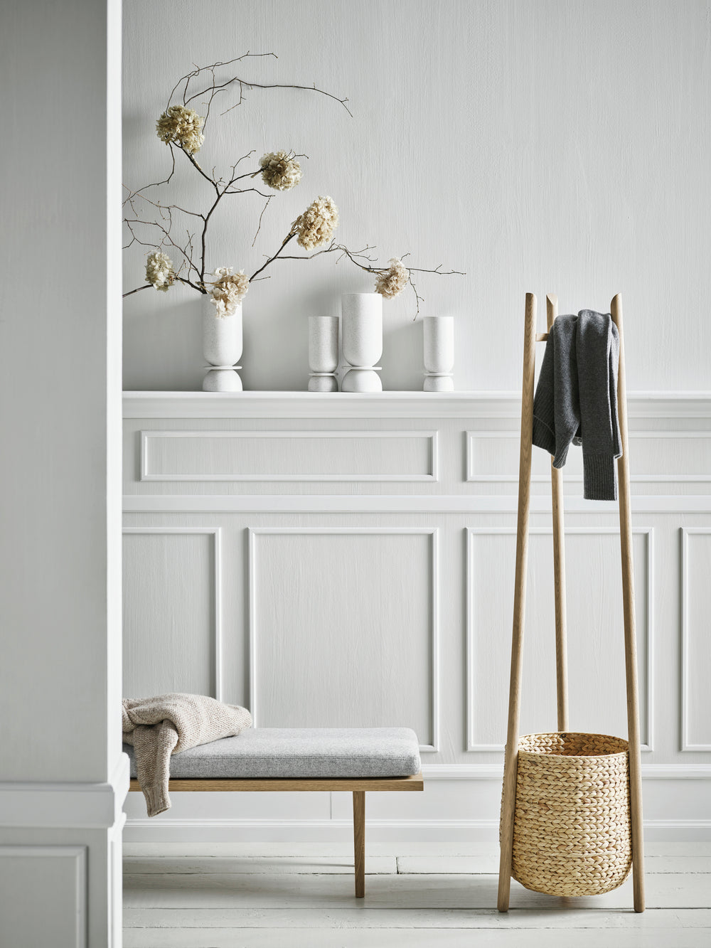 Hanger Cocoon is a multifunctional equipment that combines practicality with aesthetics. Thanks to the stylish basket placed at the bottom, it performs the function of both hanger for clothing and a clipboard for small items, such as gloves or umbrellas. The basket, made by hand from the braid, gives the whole a natural and rustic character, introducing heat into any interior. Design hanger It is solid and stable thanks to the innovative base integrated with the basket. The project is inspired by old, traditional braid techniques, reaching over 500 years.