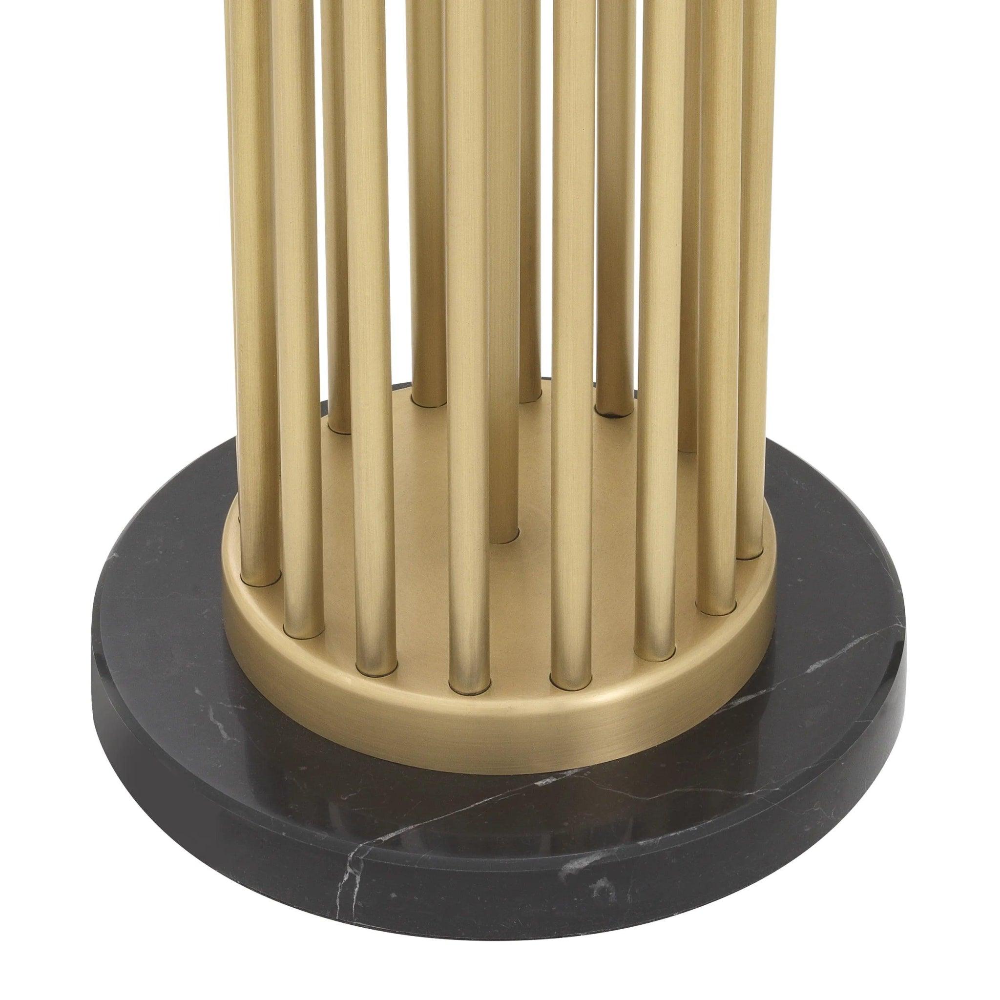 The cylindrical base is constructed of metal rods with an ancient brass finish, which gives the lamp a unique, contemporary character. This designer combination of materials and shapes makes it black lamp Condo becomes both a functional light source and a stylish decorative element.