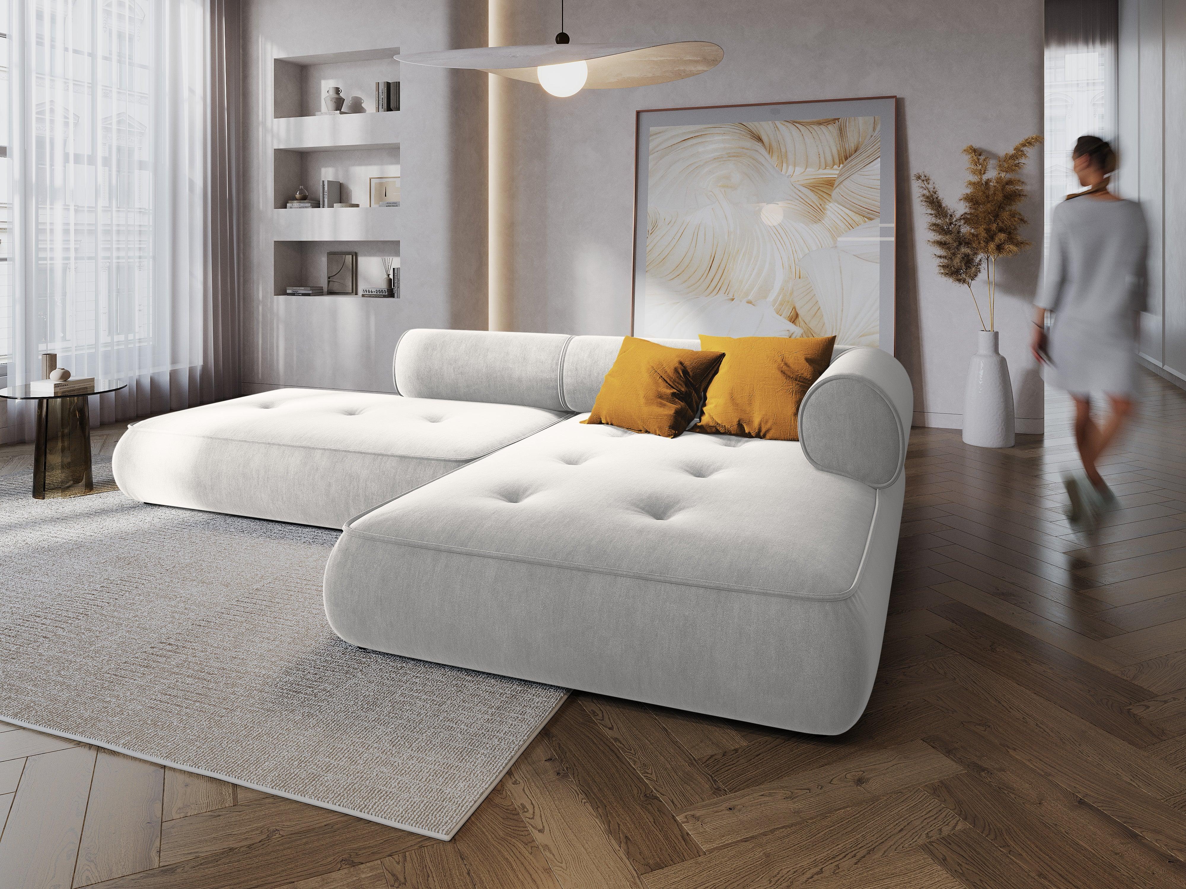 Narożnik w tkaninie szenilowej prawostronny otwarty LILY srebrny Maison Heritage    Eye on Design
