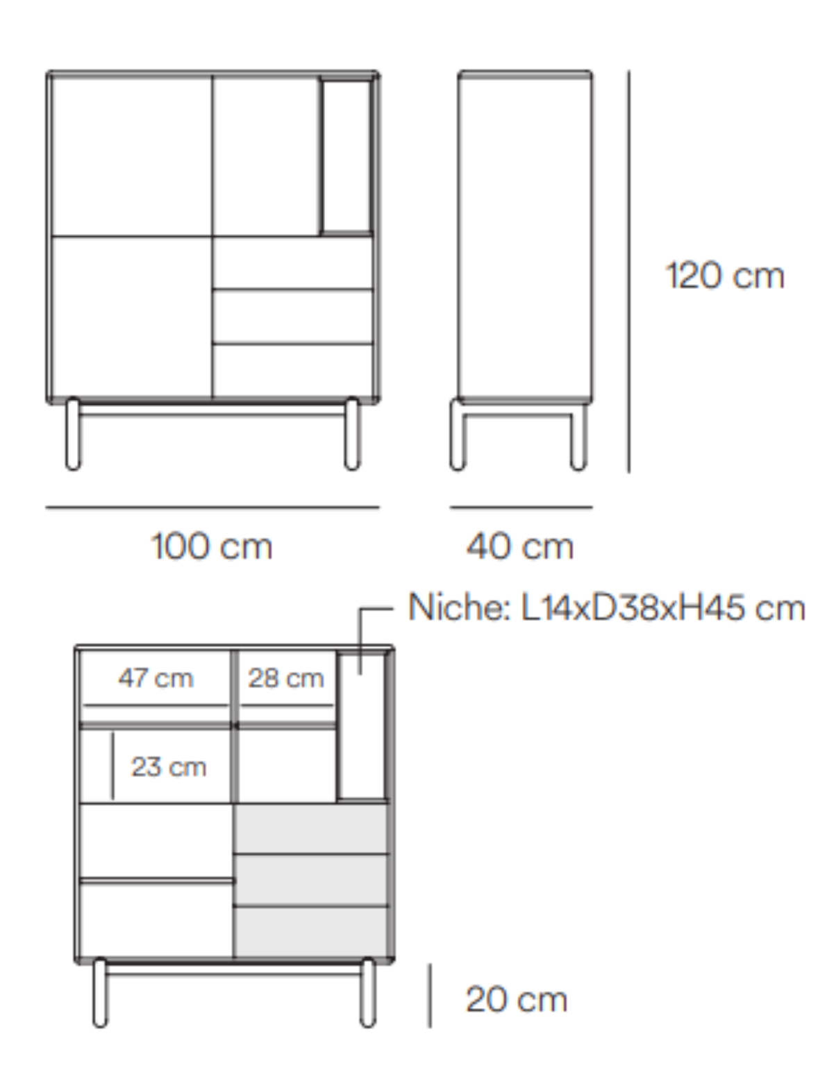 Sideboard With its spacious shelves and drawers, Corvo will organize your dining or living space. The intriguing design by Eric Cambres and Carlos Garcia also features one vertical shelf without a front, allowing you to showcase items that serve as additional decor.