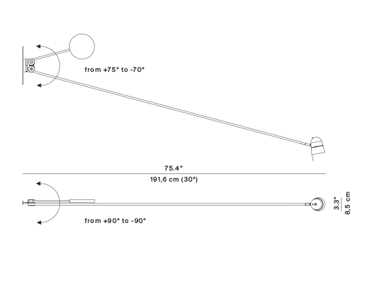 Wall lamp Luceplan counterbalance is a unique combination of functionality and modern design. It is characterized by a precise counterweight system that allows smoothly adjusting the position of the arm, ensuring flexibility in directing the light.