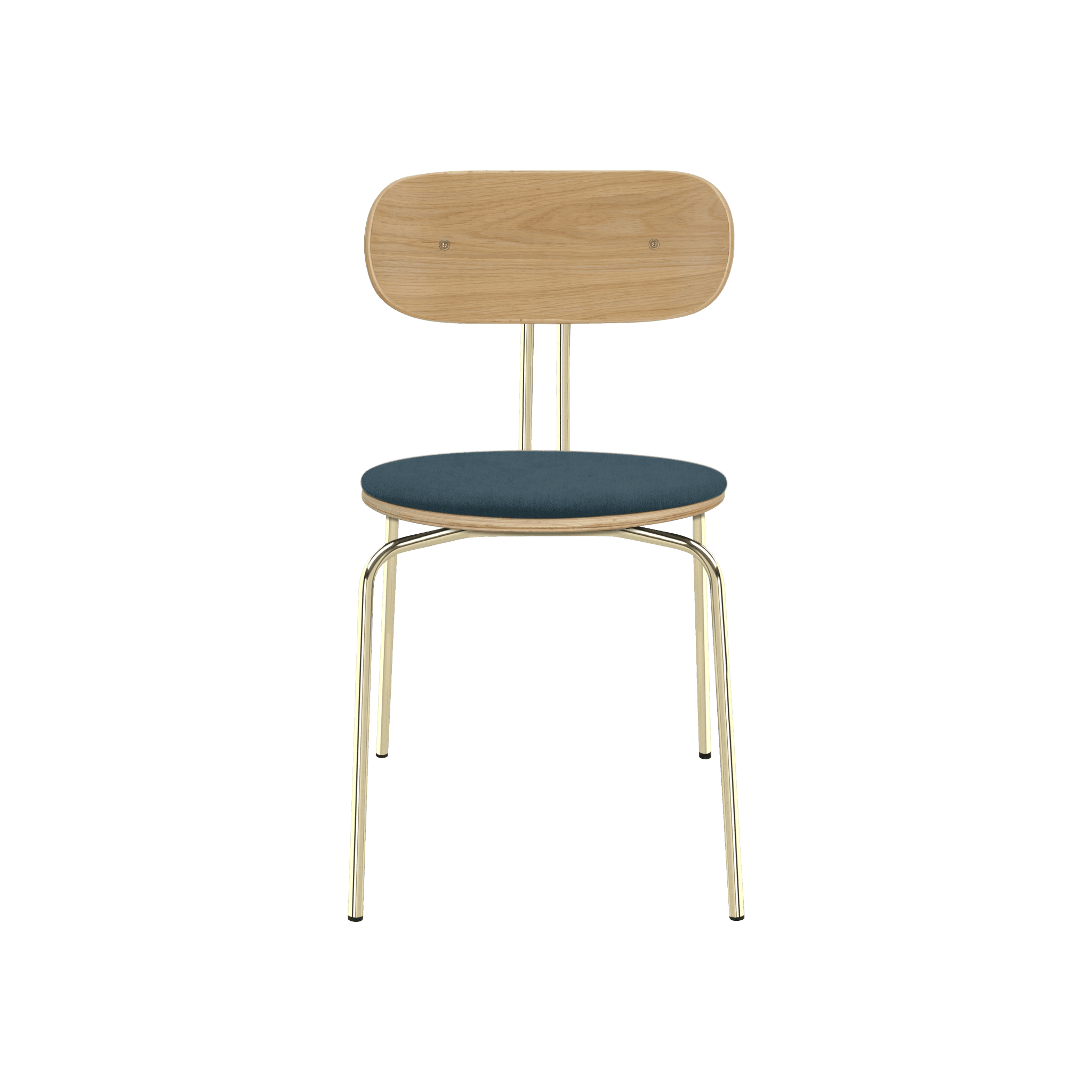 Chair Curious is elegant, light and minimalist furniture, made of oak veneer. It is available with brass or black legs, and the optional seat cushion provides additional comfort. You can choose a pillow from 17 colors of Horizons fabric, made 100% recycled, as well as in a brown or white shade of Teddy Bear fabric.