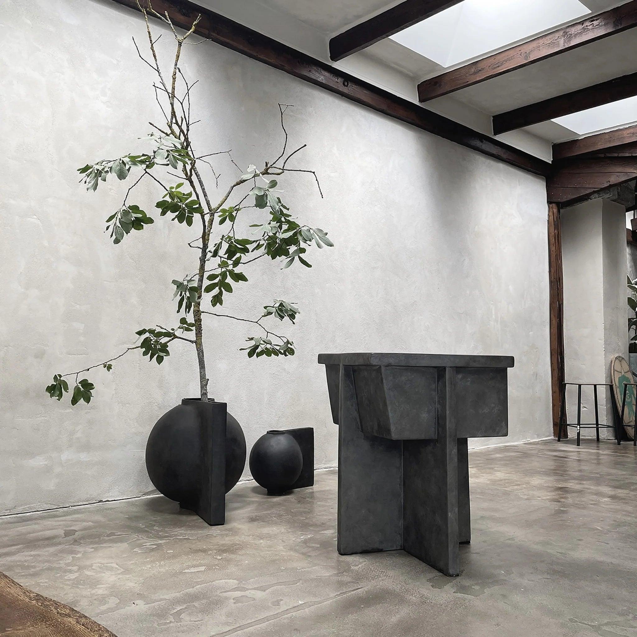 Vase The offset is made of fibrous concrete and comes in two sizes. Because it is a natural, hand -glazed product, colors may differ slightly.