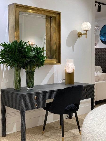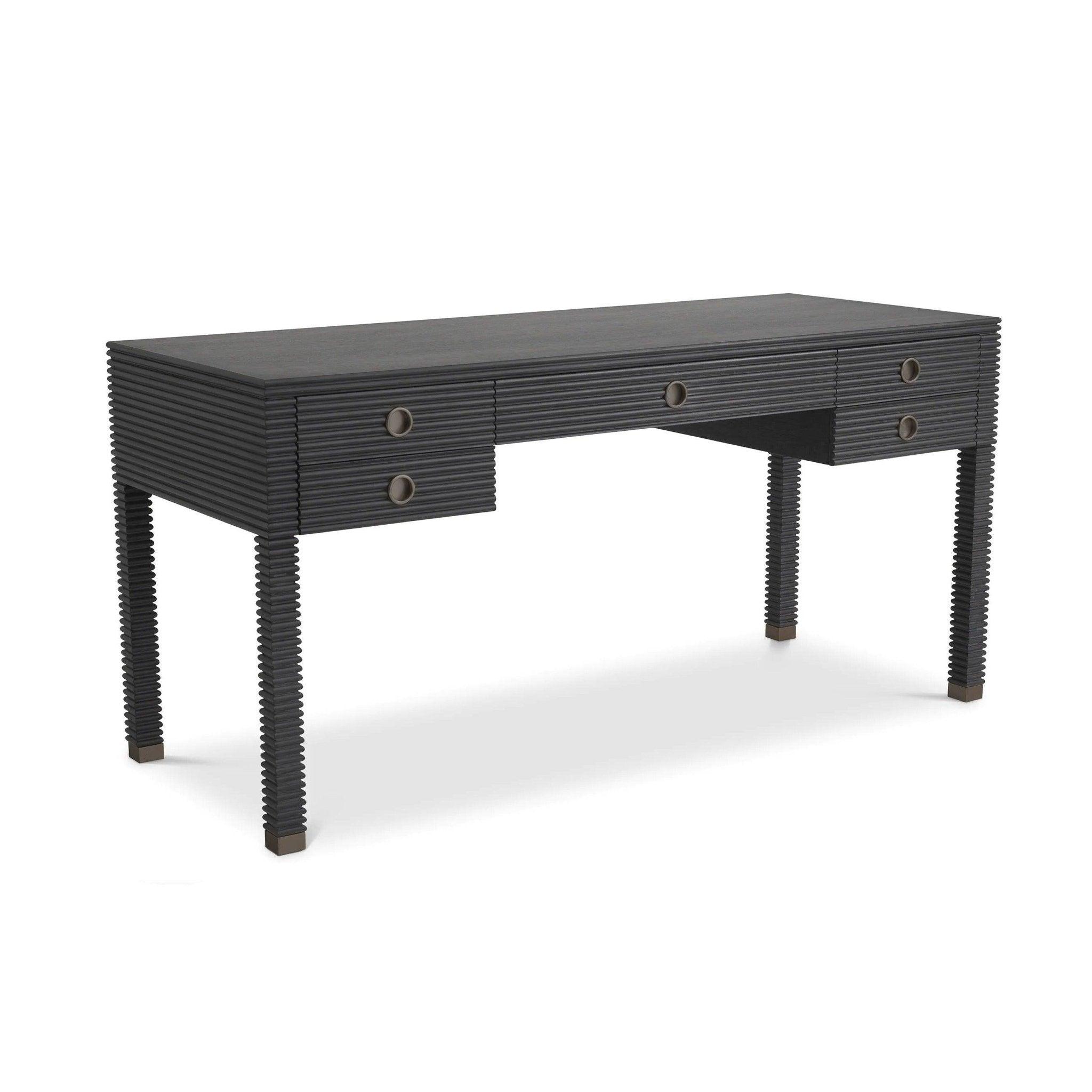 Wood carbon oak veneer contrasts with bronze equipment, creating a harmonious and sophisticated color palette. But graphite desk Dimitrios is not only aesthetics. Five spacious drawers provide enough space to store all your necessary office items, allowing you to maintain order and organization. Thanks to the Dimitrios desk, your office or home office will become a place where work becomes a pleasure, and every detail reflects your sense of style.
