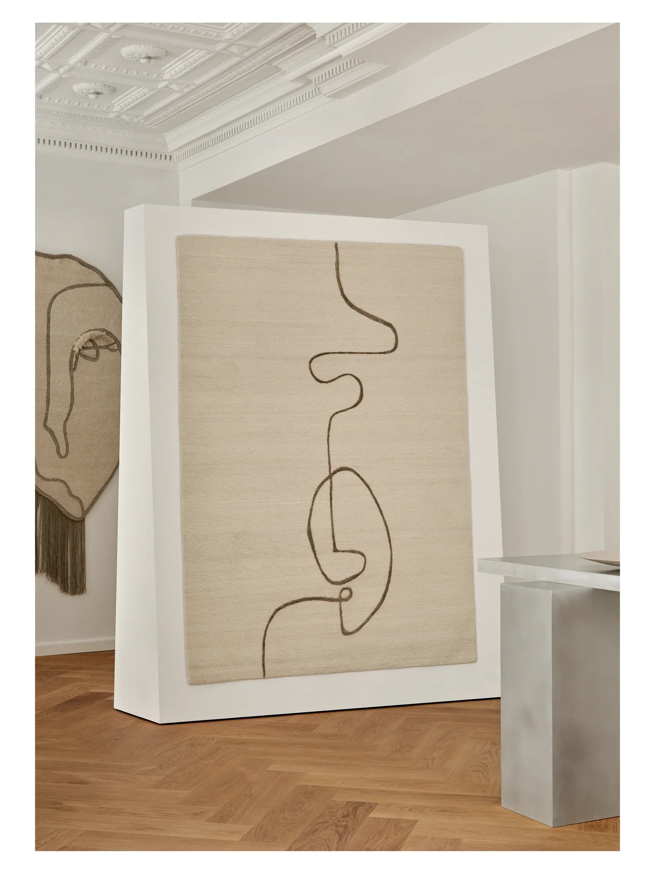 Rug Facial Maze is a composition that combines a soft texture with a strong, linear pattern. An endless line of linen runs throughout, contrasting in texture with the delicate wool, creating a dynamic yet harmonized visual impression. This is a proposal for those seeking subtle expression and refined detail in their interiors. The rug not only decorates but also offers pleasant warmth and comfort of use.