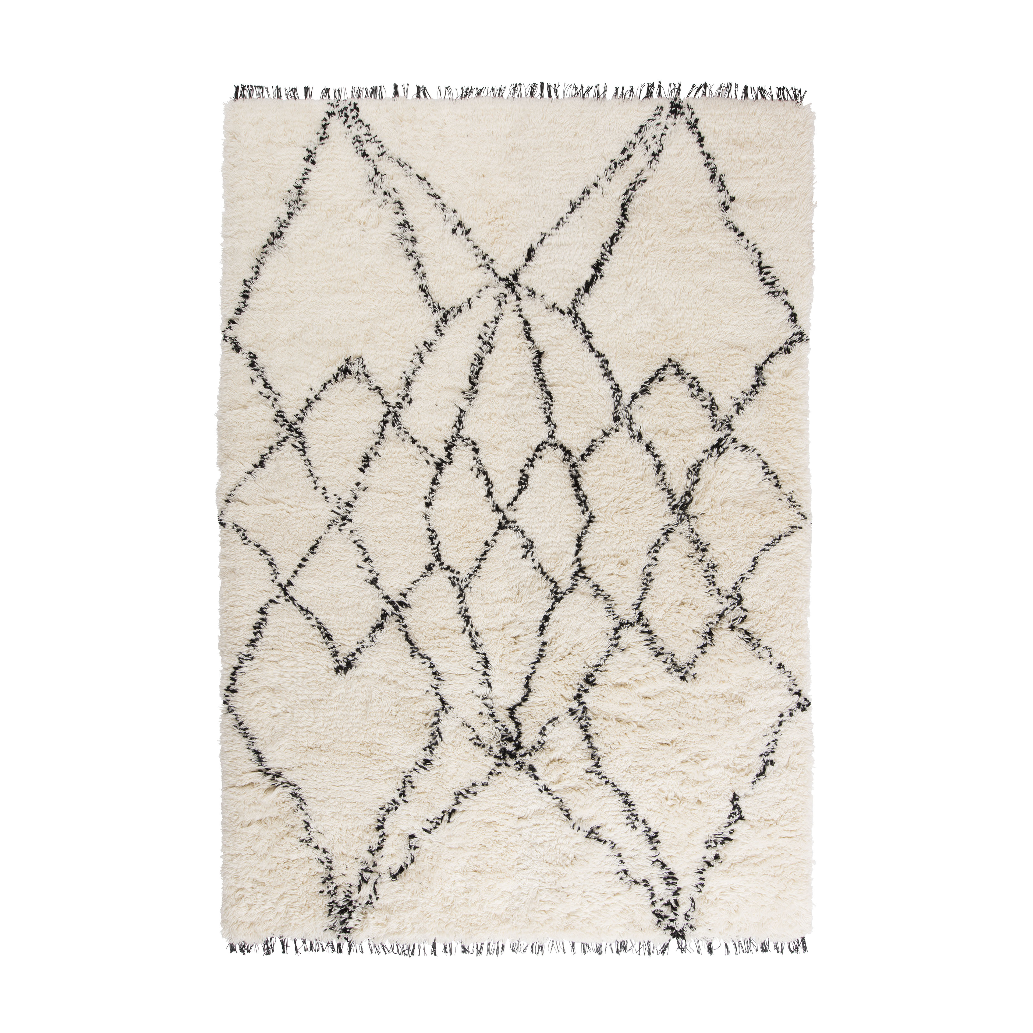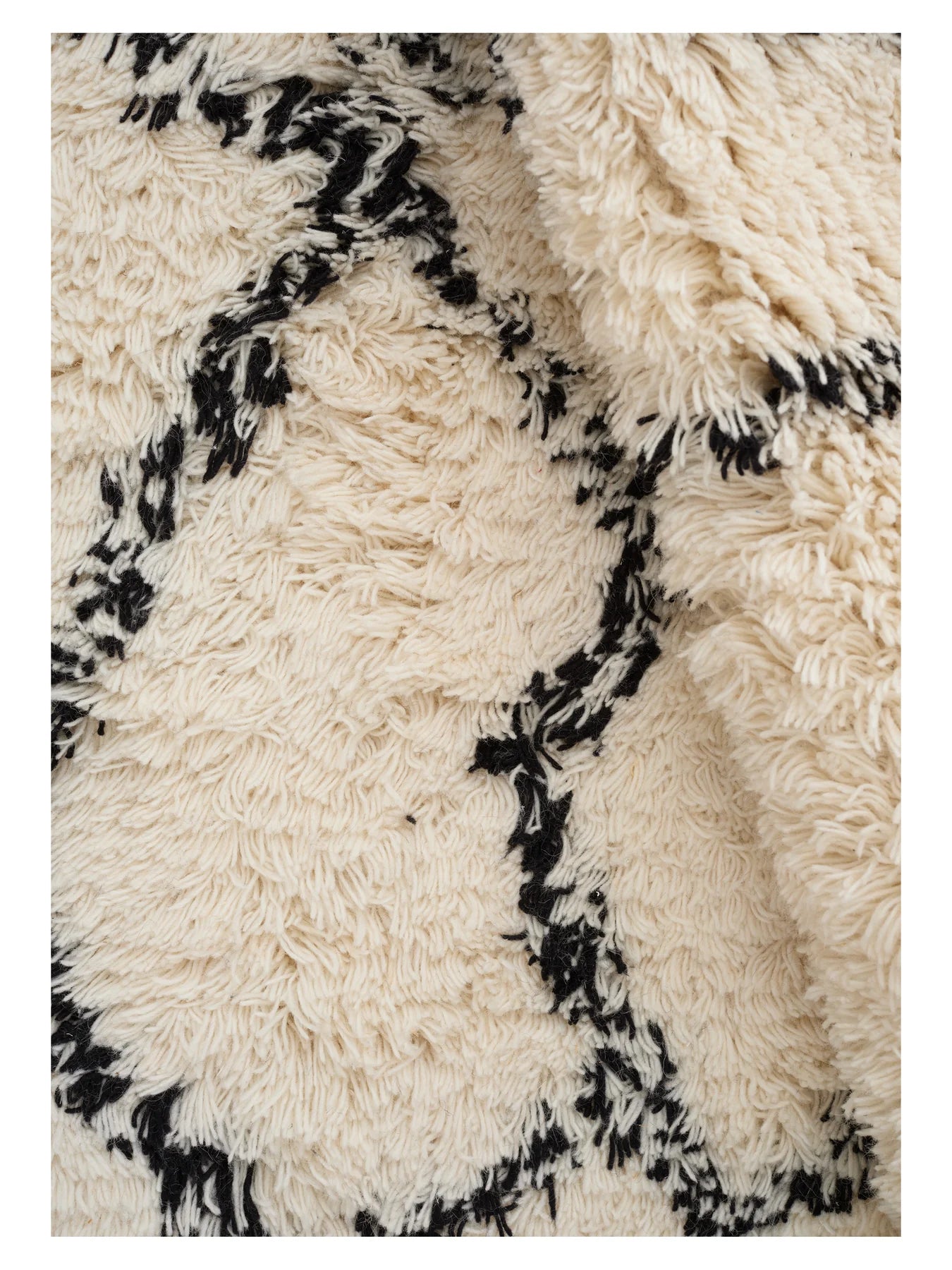 RUFFLE white long pile rug with black pattern