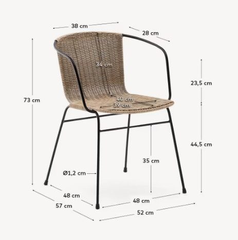 Outdoor chair is equipped with a hand-woven seat and backrest made of synthetic rattan that is resistant to UV radiation, ensuring its durability and ease of maintenance. The steel base, crafted from solid rod, guarantees stability and resistance to everyday use. Chair Eltiera is an excellent choice for both indoor and outdoor spaces, where it will highlight the natural character of the arrangement, combining comfort with durability.