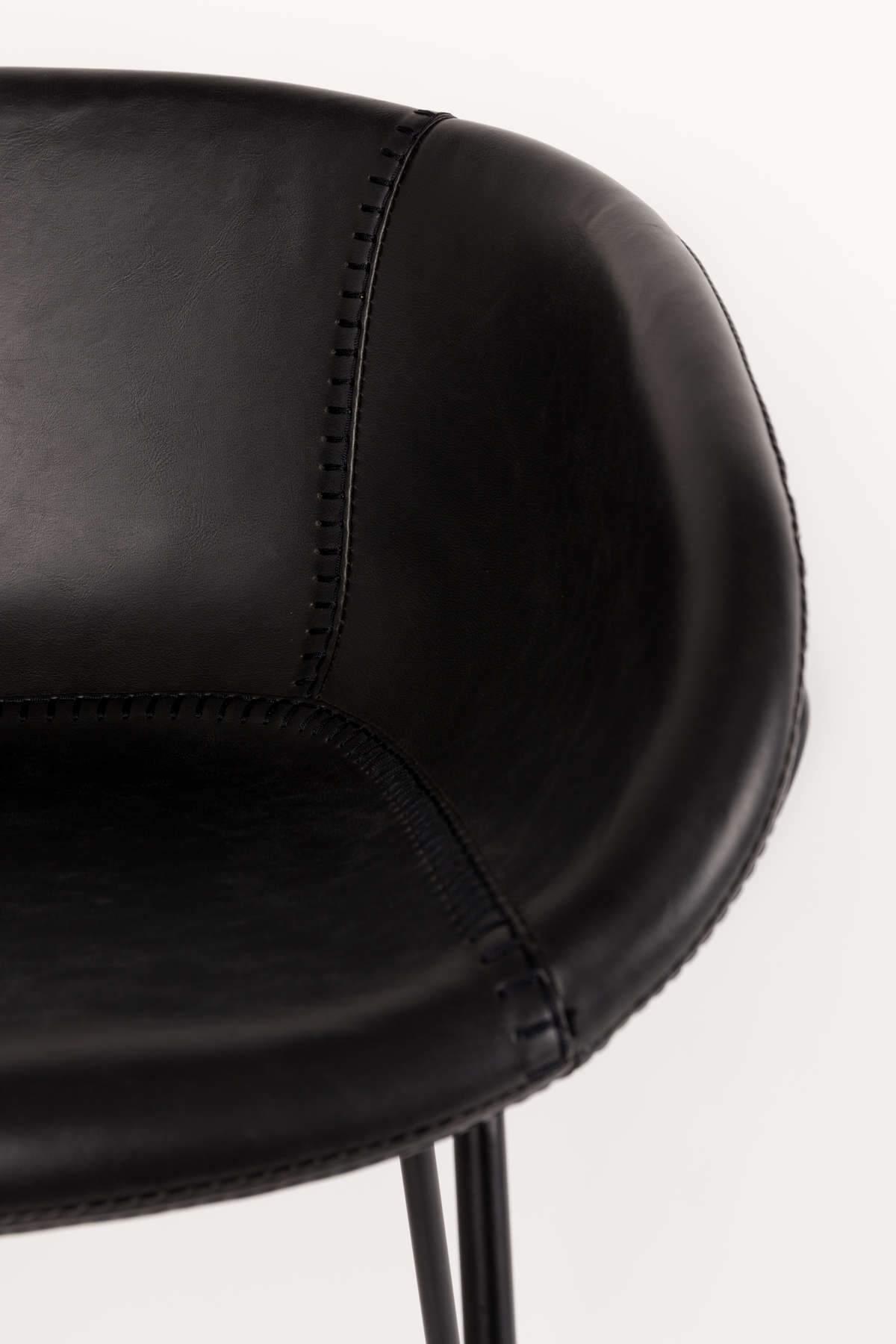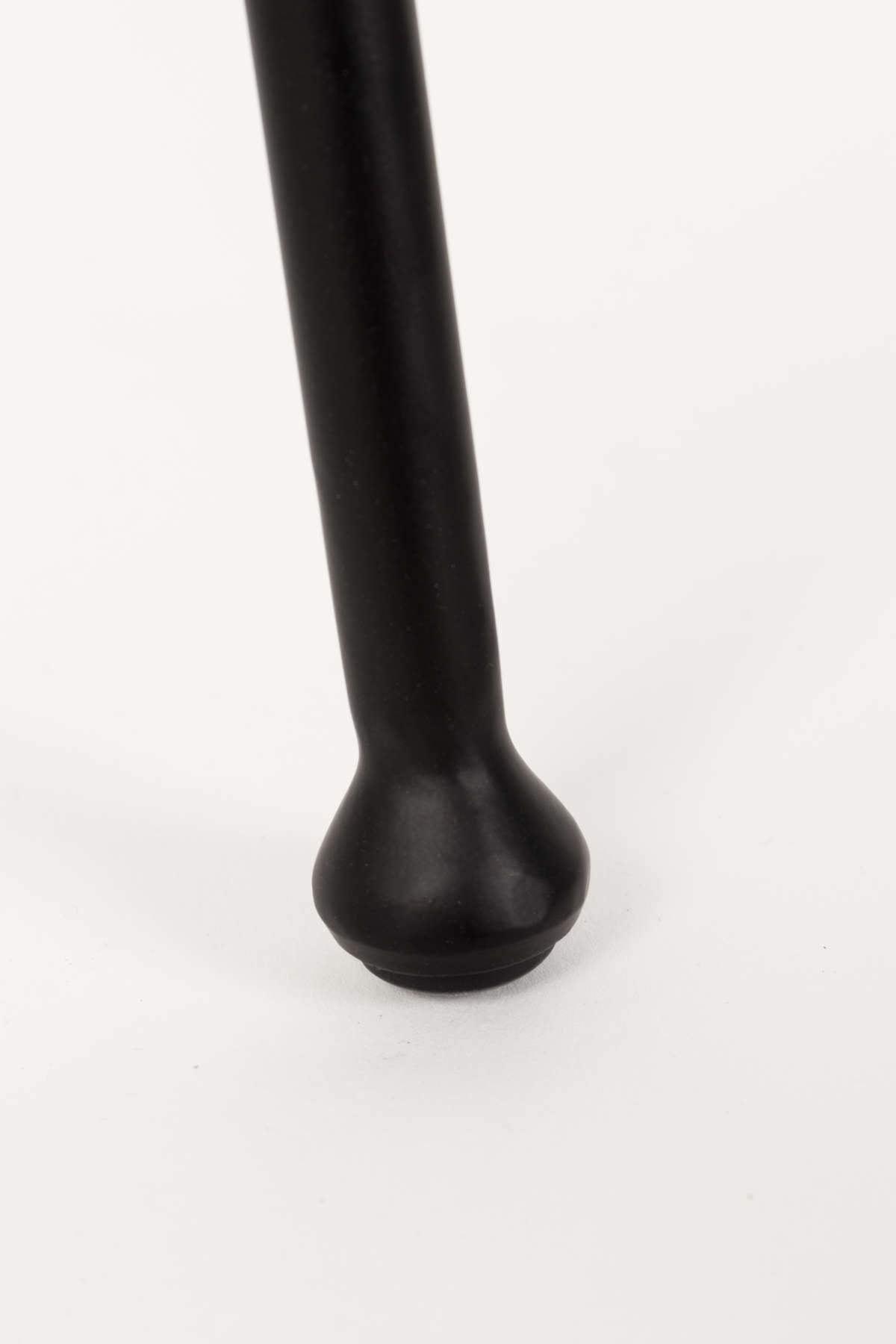 The elegance of the bar stool is highlighted by steel legs in black. The chair can fit into any room, regardless of the type of flooring. Plastic caps have been applied to the feet of the legs, which prevent damage to surfaces.