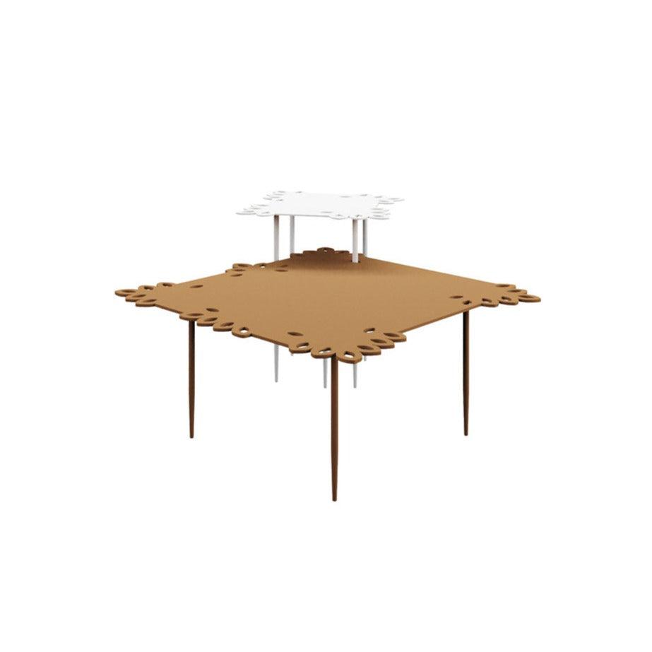 Flat lace coffee table, which in itself combines metal with the subtlety of a hairstyle, enlivens the space with a light, romantic and dynamic accent. This unique additional furniture fits perfectly with any type of environment, adding an unusual charm to it.